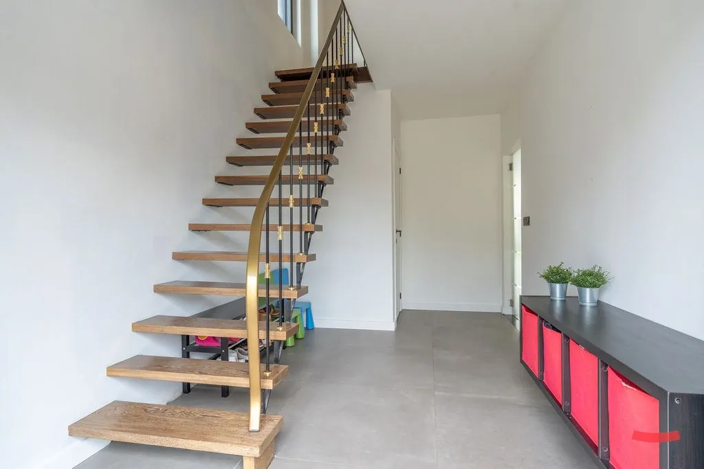 Je ziet het al meteen bij het binnenwandelen van de inkomhal: licht en luchtig, met een open trap naar boven. Onze tip? De traptreden nog even (laten) opschuren en de leuning eraf, en je hebt meteen een supertrendy binnenstapper. Hier is ook een (gasten)toilet aanwezig. ...