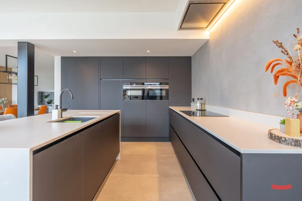 En ook de keuken is een cadeautje, want oh boy…die is tot in de puntjes in orde! Heerlijk clean en overzichtelijk, met alle nodige snufjes. Als je de kast ingaat (been there, done that), dan kom je nog bij een handige bergplaats, die op zijn beurt weer doorloopt naar de extra grote garage. Aan de achterzijde is een wasplaats voorzien, met vaste kasten en een douche. Er zijn nog een paar kleine afwerkingspuntjes, maar da’s een eitje voor een Handige Harrie of Harriëtte als jij, toch? Via de garage kan je trouwens ook naar de tuin.