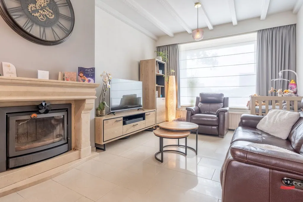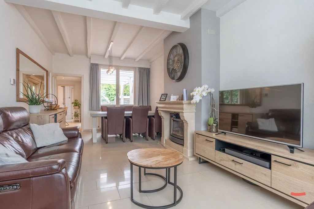 Aansluitend komen we in de woonkamer, met z’n gezellige features. Of had je die sfeervolle houten balken en cosy houthaard nog niet gespot?