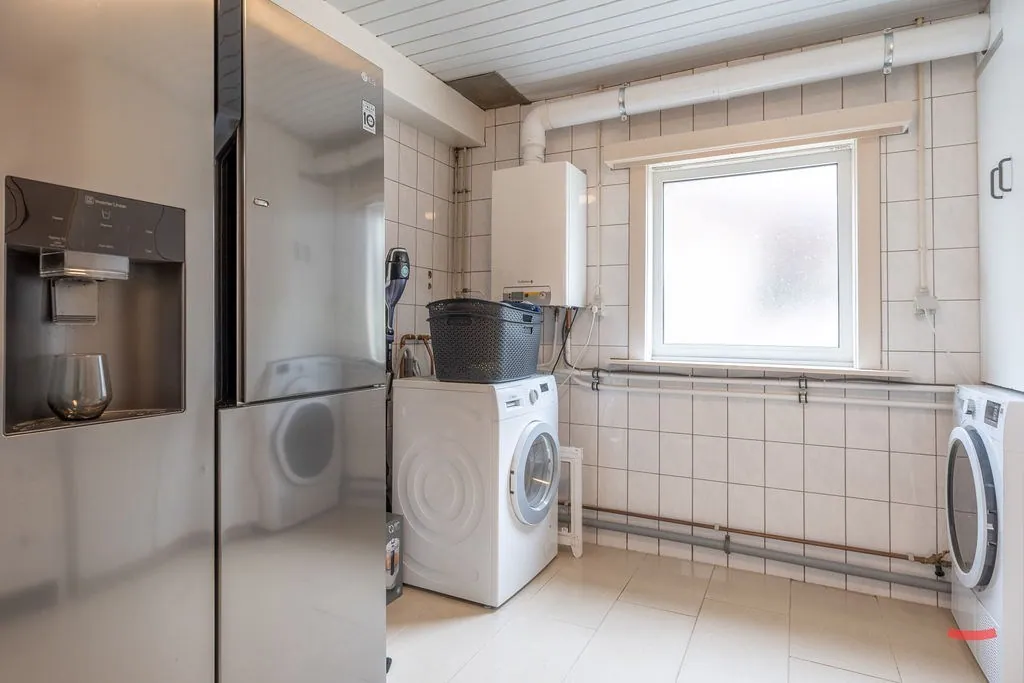 Helemaal achteraan bij de woning vinden ... we nog een aparte toilet en een ruime wasplaats, die ook toegang geeft naar de tuin. Zullen we meteen een rondje lopen in de tuin? Want ook die werd recent voor jou hélemaal instapklaar ingericht. Het motto van de eigenaars? Clean, onderhoudsvriendelijk en gezellig. En da’s goed gelukt, toch? De BBQ aan en gaan.