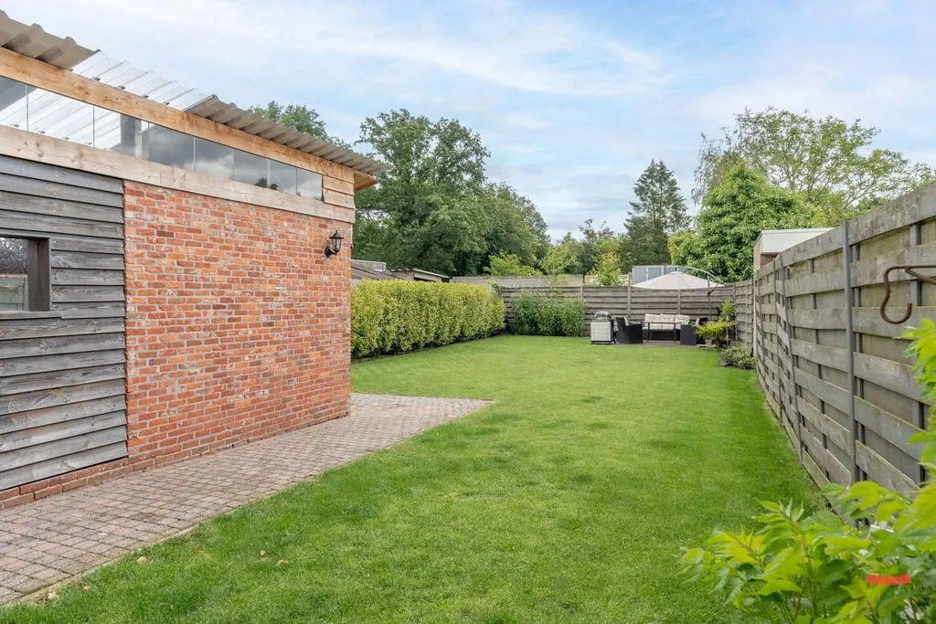 Verder staat er nog een schuur – dak werd recent vernieuwd – en een handige overkapping. Gezellig om te vertoeven, maar ook ideaal om je kinderen de was te laten ophangen. Just saying.