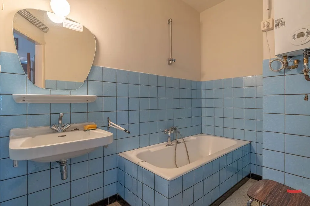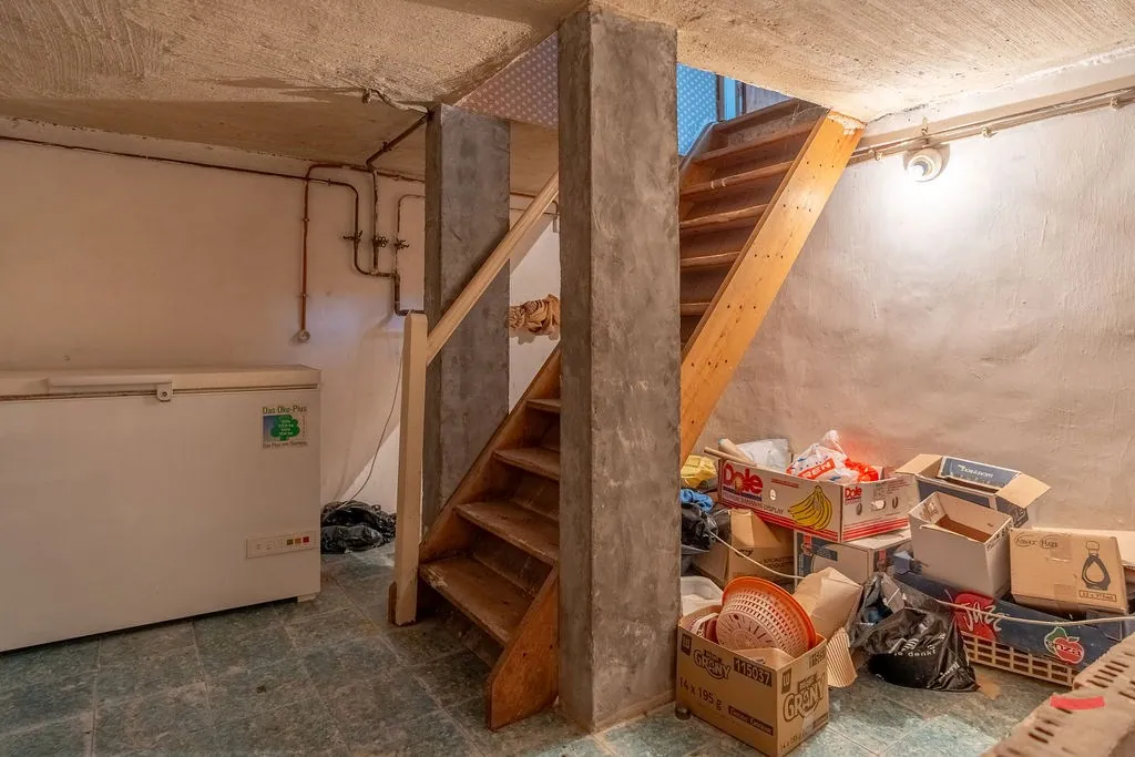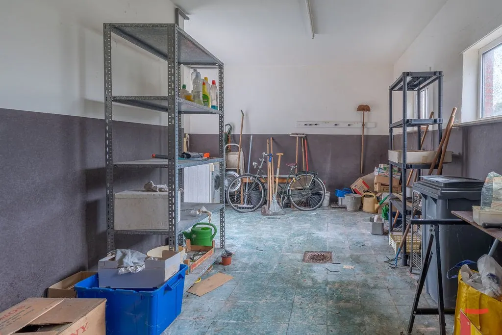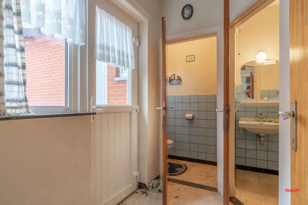 Naast de keuken vinden we de achterinkom, met toegang naar de badkamer en een apart toilet. Graag nog wat uitbreiden, zeg je? Aansluitend bij de woning ... zit nog een grote berging. Er is trouwens ook een kelder aanwezig.