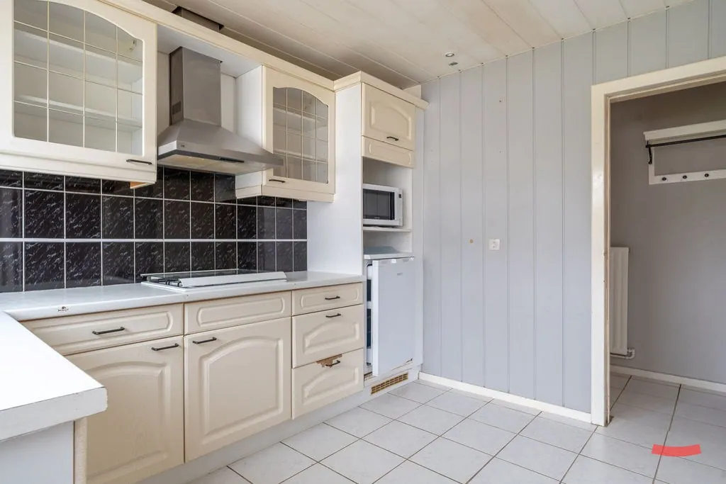 Via de ruime inkomhal stappen we de woonkamer in. Wat je meteen opvalt? Lichtinval én groen uitzicht door alle ramen. Dubbelcheck! Aansluitend zit de keuken. Liever de open sfeer nog meer tot z’n recht laten komen? Wat dacht je van het slopen van de muur tussen woonkamer en keuken? Een eiland erin en van die fijne grote (schuif)ramen met zicht op de tuin, en je zit heerlijk te wonen.