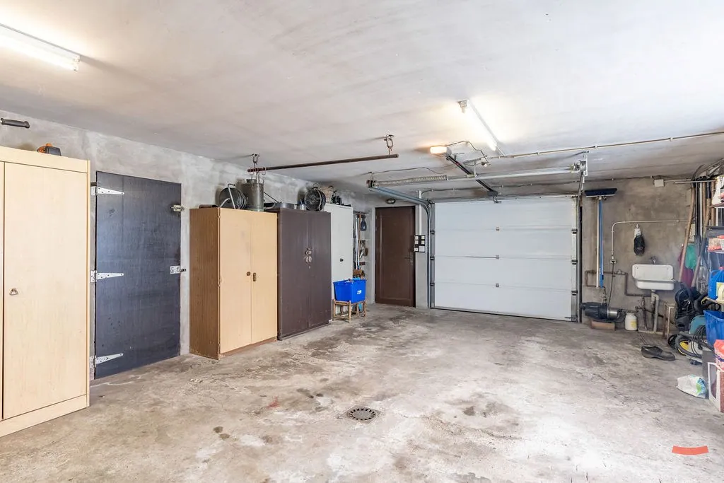 Naast de keuken is tenslotte nog de wasplaats met een apart toilet, en een inpandige garage.