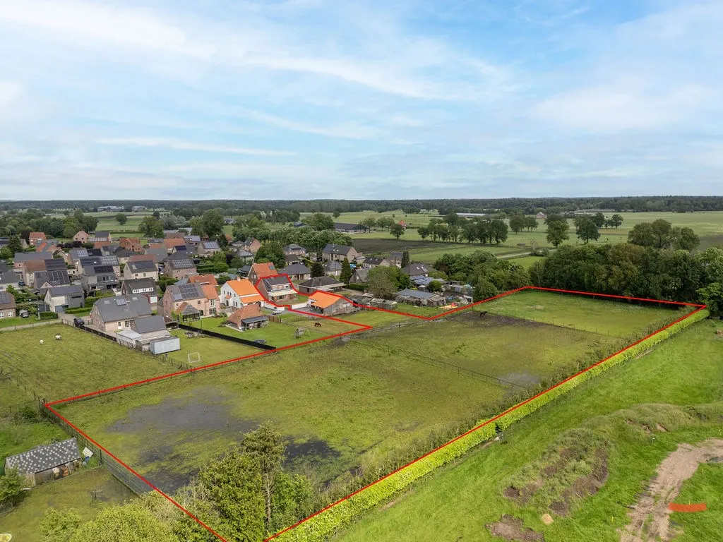 Op zoek naar een plek voor je 2 paarden, 3 pony’s, 14 alpaca’s, 4 honden en 8 hangoorkonijnen? Dierenliefhebbers, zet je schrap! Dit stulpje staat namelijk op een perceel van maar liefst ong. 1 hectare en beschikt over een (vergund!) bijgebouw met (paarden)boxen. Je zit trouwens aan de rand van ‘t bos, dus de hond uitlaten of een tripje met je ros wordt dan plots wel héél gezellig.