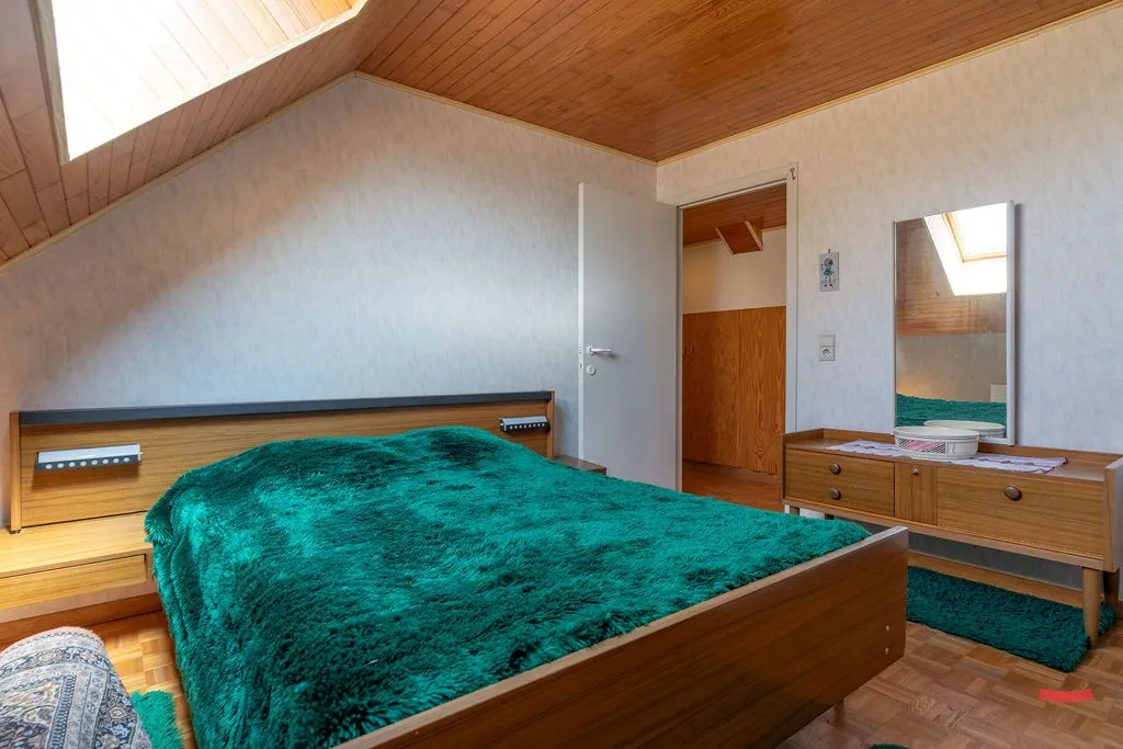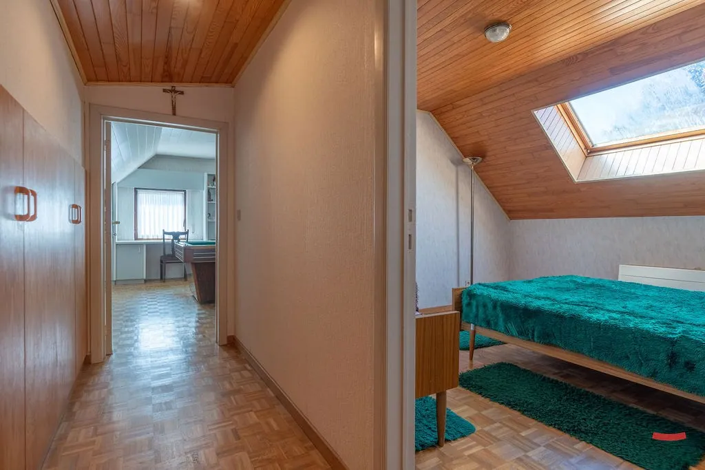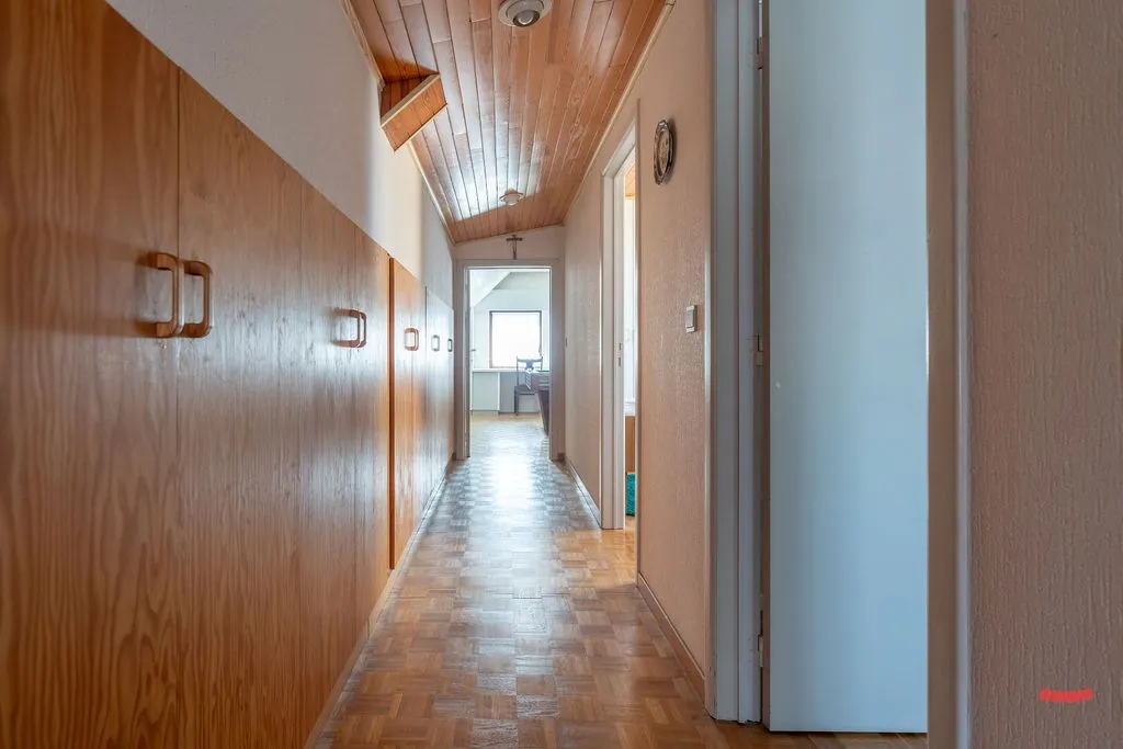 Boven werden 3 slaapkamers ingericht. De ene al wat groter dan de andere, dus de kinderen vinden hun plekje wel. En als ze stout zijn, zwier je ze gewoon eventjes in de kast. Keuze genoeg, want elke kamer én de hal werden voorzien van inbouwkasten.