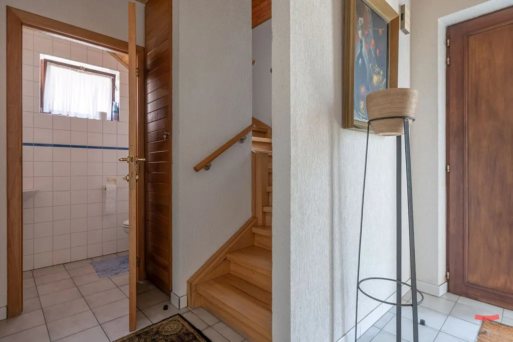 Het voordeel van een niet-meer-zo-piepjong-huis? Een échte inkomhal! Niet alleen een ruime, lichte binnenkomer voor gasten, maar een vestiaire en gastentoilet is toch superpraktisch?