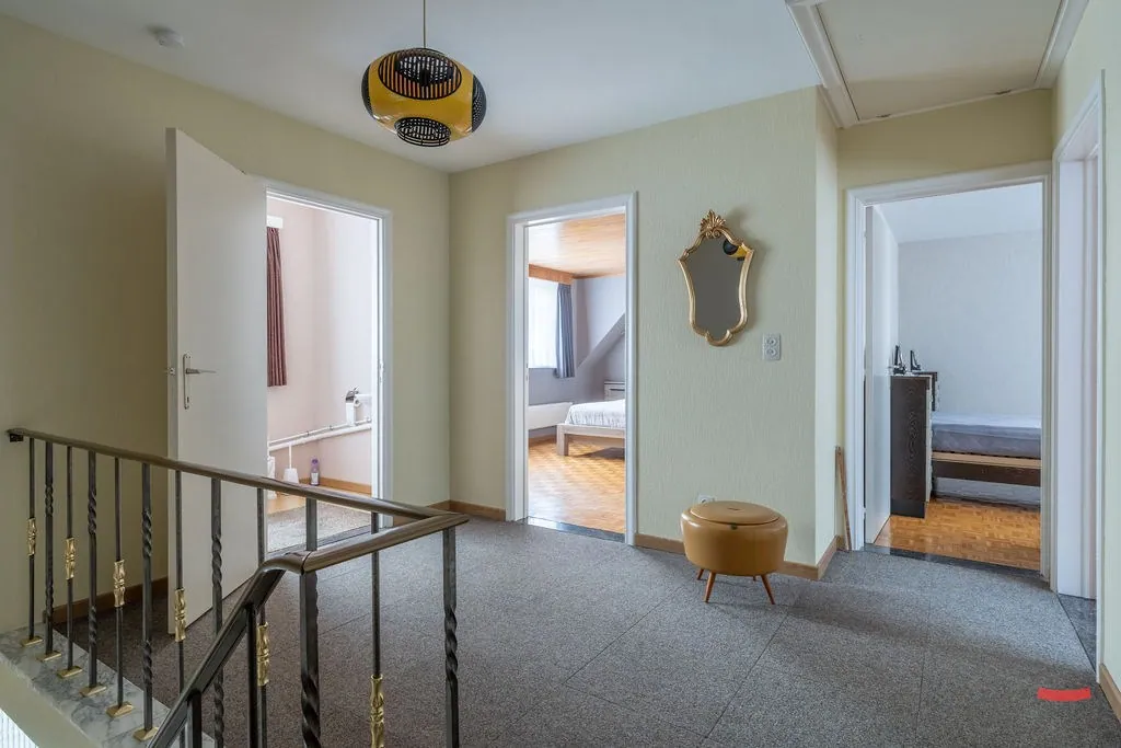 Boven zijn er 3 grote slaapkamers en kleiner kamertje met kastenwand en toilet. De plastieken kerstboom kan je nog kwijt op de grote zolder.