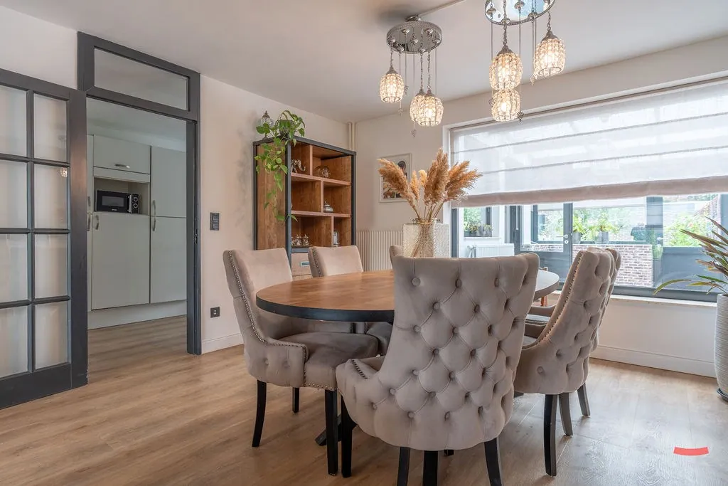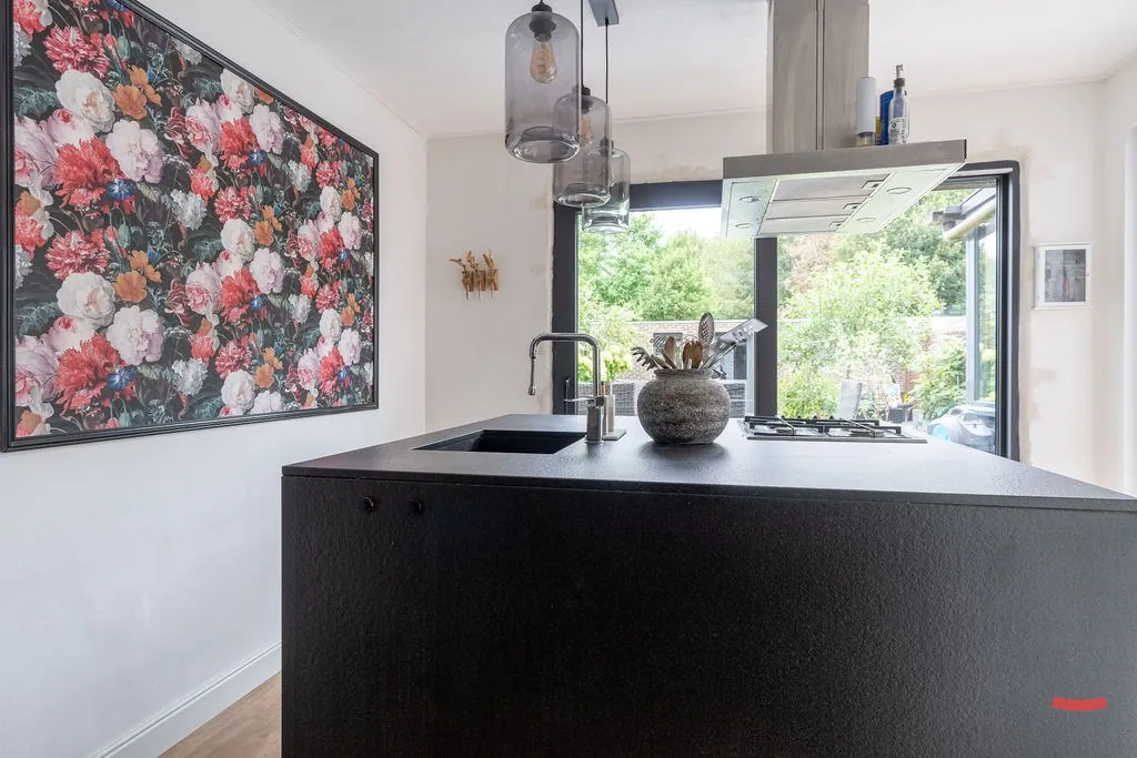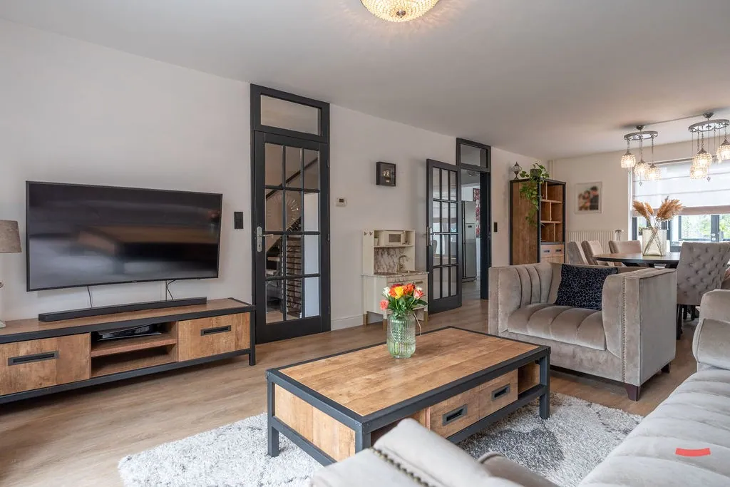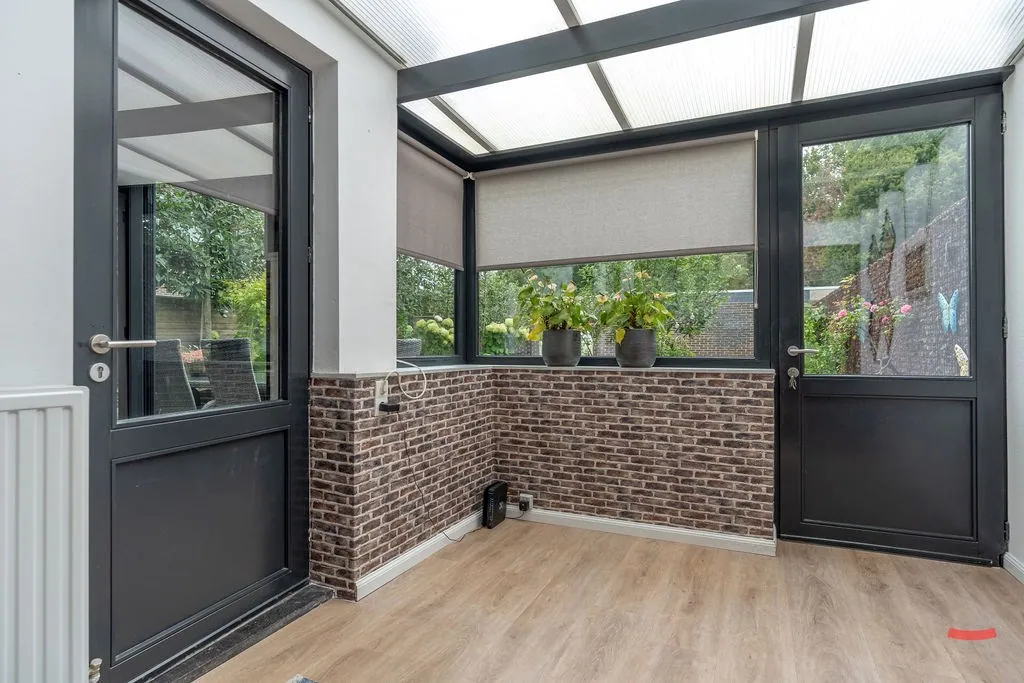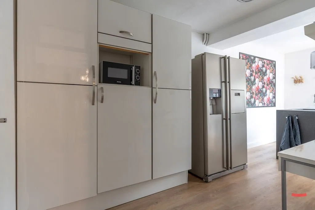 Via de inkomhal – met gastentoilet – kijk je zo de woonkamer in door de glazen deur. En da’s meteen een fijne binnenstapper, want die ziet er verrassend gezellig uit, toch? De grote ramen aan voor- en achterzijde zorgen voor een lekker luchtige sfeer, die nog eens extra in de verf gezet worden door de glazen deur naar de open keuken. De keuken werd trouwens een flink stuk uitgebreid, waardoor je plaats hebt voor een erg groot eiland. Naast de keuken is trouwens nog een handige voorraadkelder. ... Verder is aansluitend nog een veranda/lounge met fijn zicht op je tuin. Ook een handige speelkamer voor de kinderen, toch?