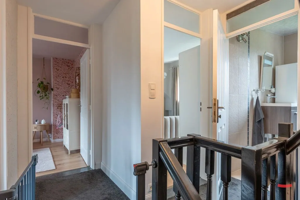 Op de 1ste verdieping zijn 3 slaapkamers. De ene nog groter dan de andere, dus je kingsize bed vindt hier z’n plekje wel. Verder vinden we de badkamer. Deze is net wat compacter, maarrr praktisch ingedeeld. Deze is met bad (met douche), badkamermeubel en een toilet.