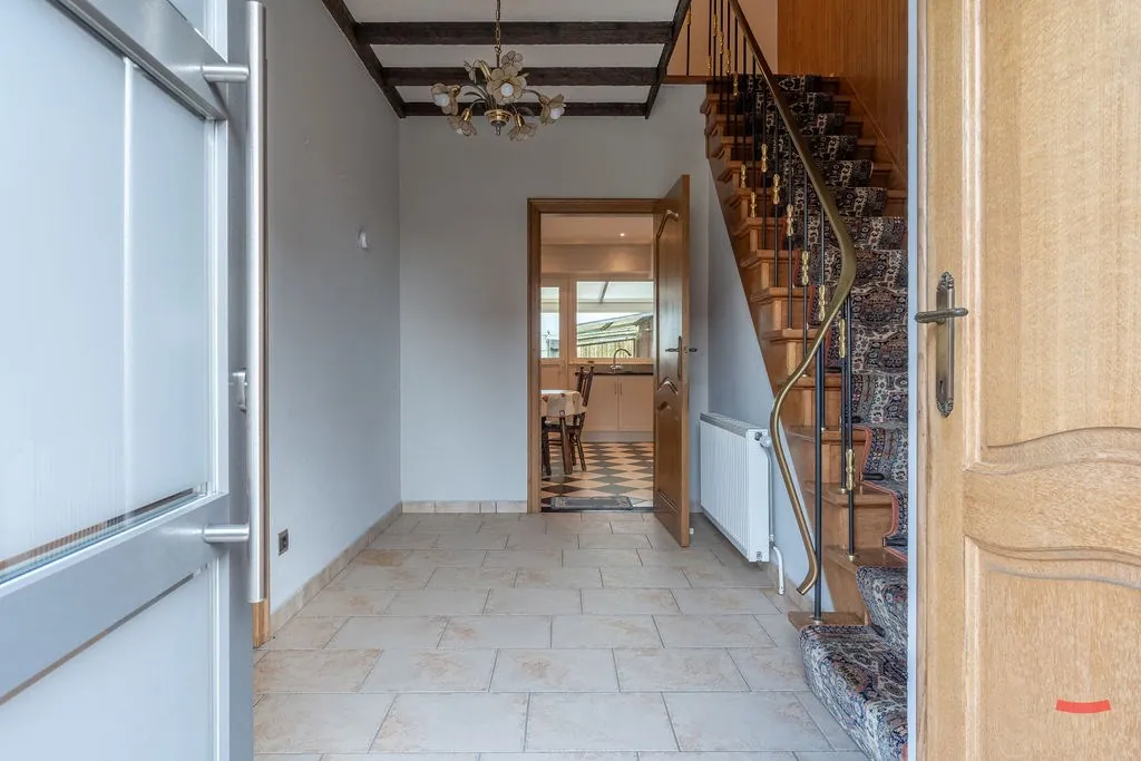 De inkomhal is een klassieker: een centrale uitvalsbasis naar de woonkamer, keuken, gastentoilet en de bovenverdieping. Duidelijk en overzichtelijk. Links vinden we de woonkamer. Een fijne ruimte met veel lichtinval. Net iets te compact naar je zin? No problemo, wat dacht je van het uitbreiden naar de veranda, om zo een grote, open ruimte te creëren?
