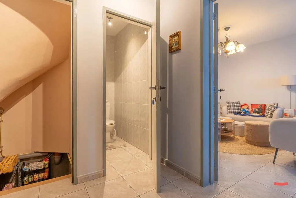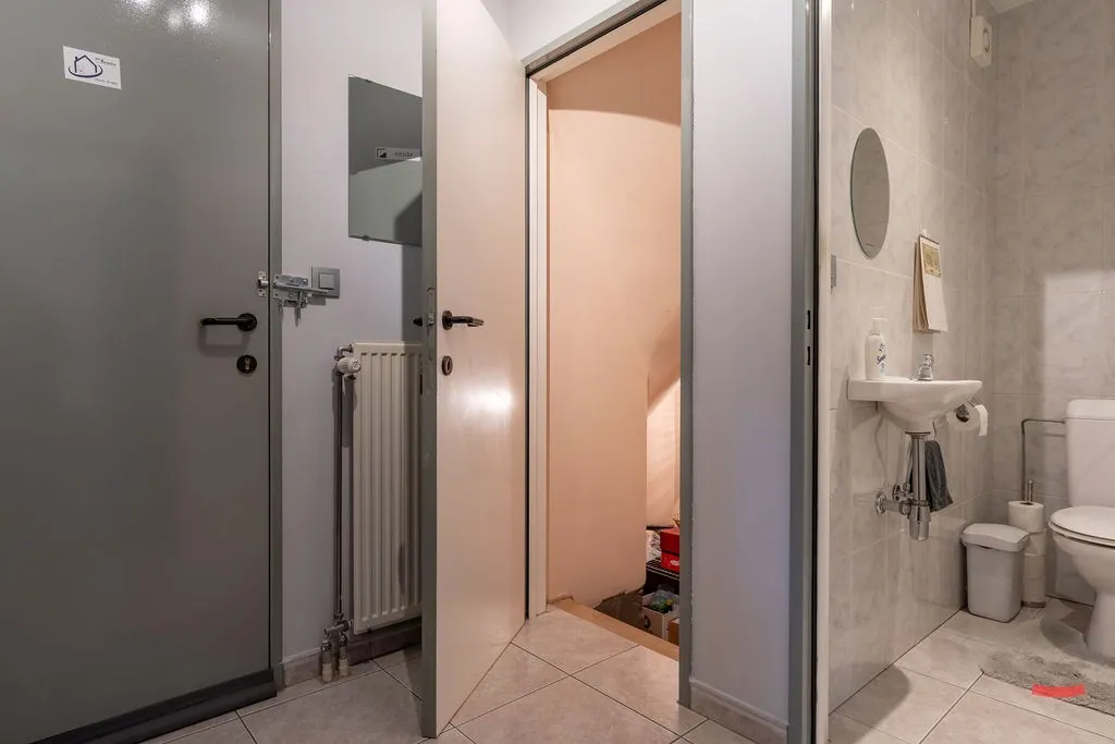 Het fijne aan een gebouw dat niet meer zo piepjong is? Een praktische indeling! Je stapt binnen via een ruime inkomhal, met een gastentoilet en zelfs een eigen voorraadkeldertje. Handig toch? Verder komen we in de woonkamer, met aansluitend de keuken. Rechttoe rechtaan en onderhoudsvriendelijk, zo hebben we het graag.