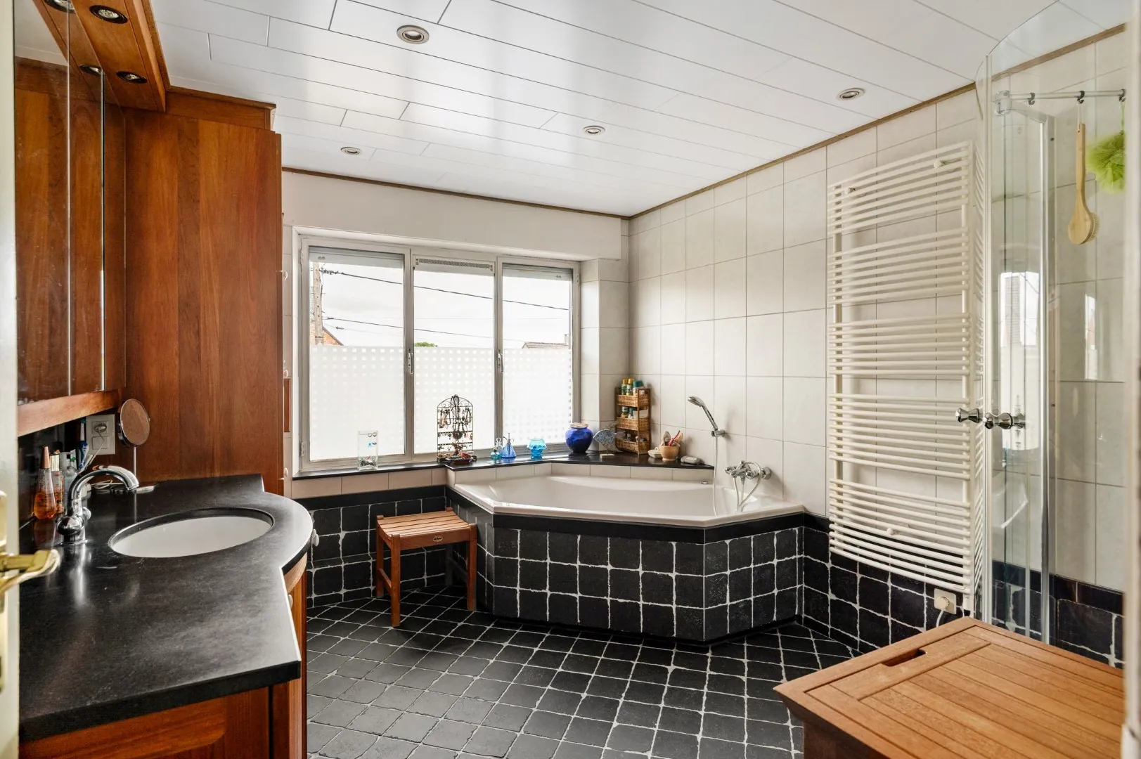 Verder vinden we op deze verdieping 2 grote slaapkamers en een 3de, ietwat kleinere (slaap)kamer. De badkamer is een echte gezinsruimte met een bad, douche, wasmeubel en heel wat bergruimte.