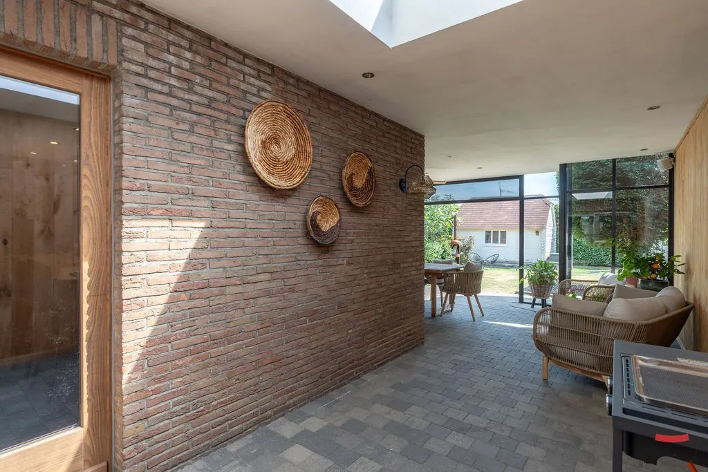 En dan de tuin…da’s een pareltje. Niet teveel gedoe met onderhoud, maar sfeervol en tot in de puntjes ingericht. En vooral het overdekte terras is aan absolute meerwaarde. Of in dit geval is “tuinkamer” een betere term, want je kan ‘m zelfs volledig afsluiten en dus ook in de winter is ’t er gezellig (en warm) vertoeven. Een supertoffe aanvulling van je woonkamer dus!