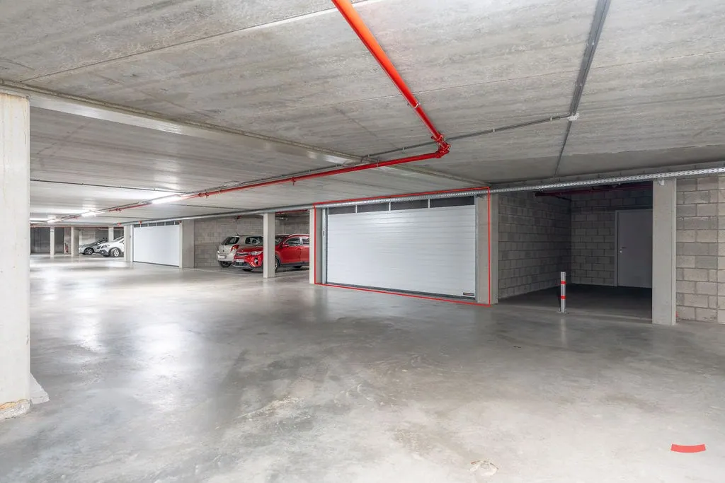 In de kelder zit een grote parkeergarage. Hoewel de meeste bewoners gewoon over een open parkeerplaats beschikken, mag het voor jou net dat tikje meer zijn. Jij beschikt namelijk over een dubbele parkeerplaats, afgesloten met een poort. Verder is ‘ie nog eens extra diep, waardoor je 3 auto’s kwijt kan. De garage zit niet omvat in de prijs, maar koop je verplicht aan voor een bedrag van 25.000 EUR.