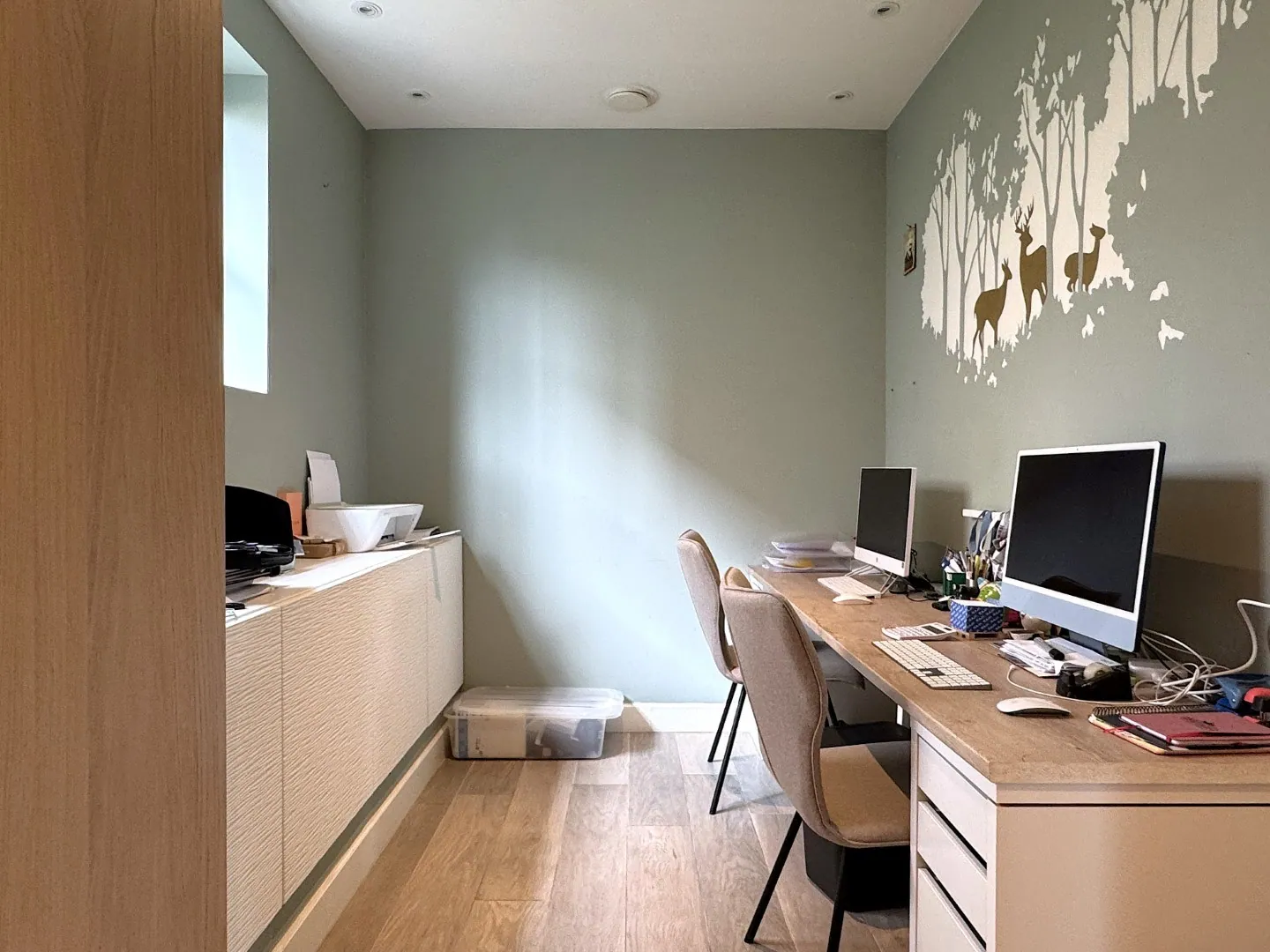 Verder is er om de hoek nog een apart kantoor, voorzien van kasten en bureau. Ideaal als thuiswerkplek of studeerhoekje voor de kinderen.