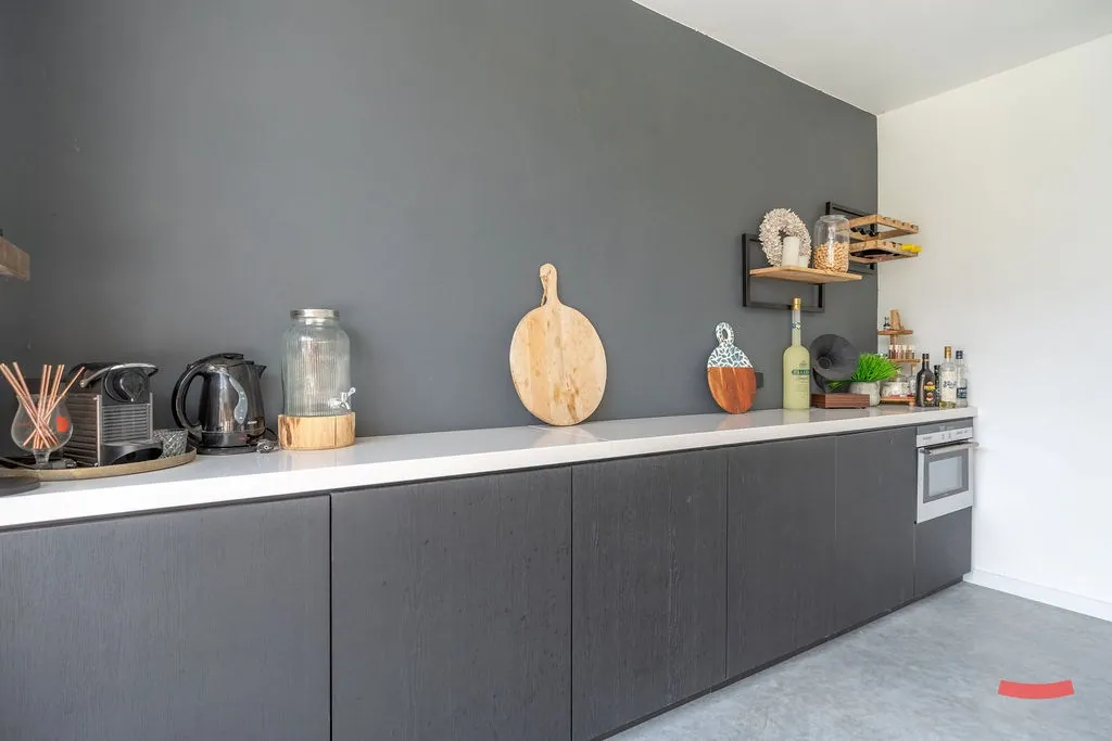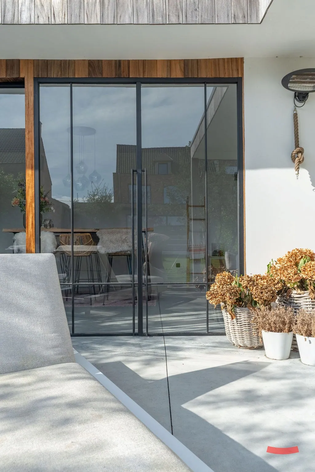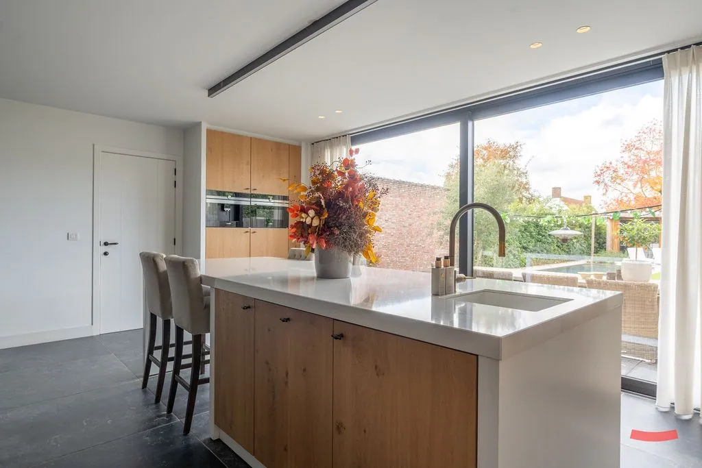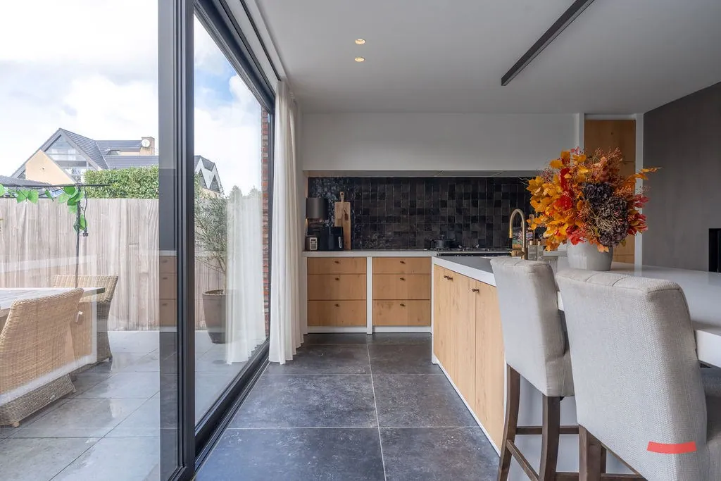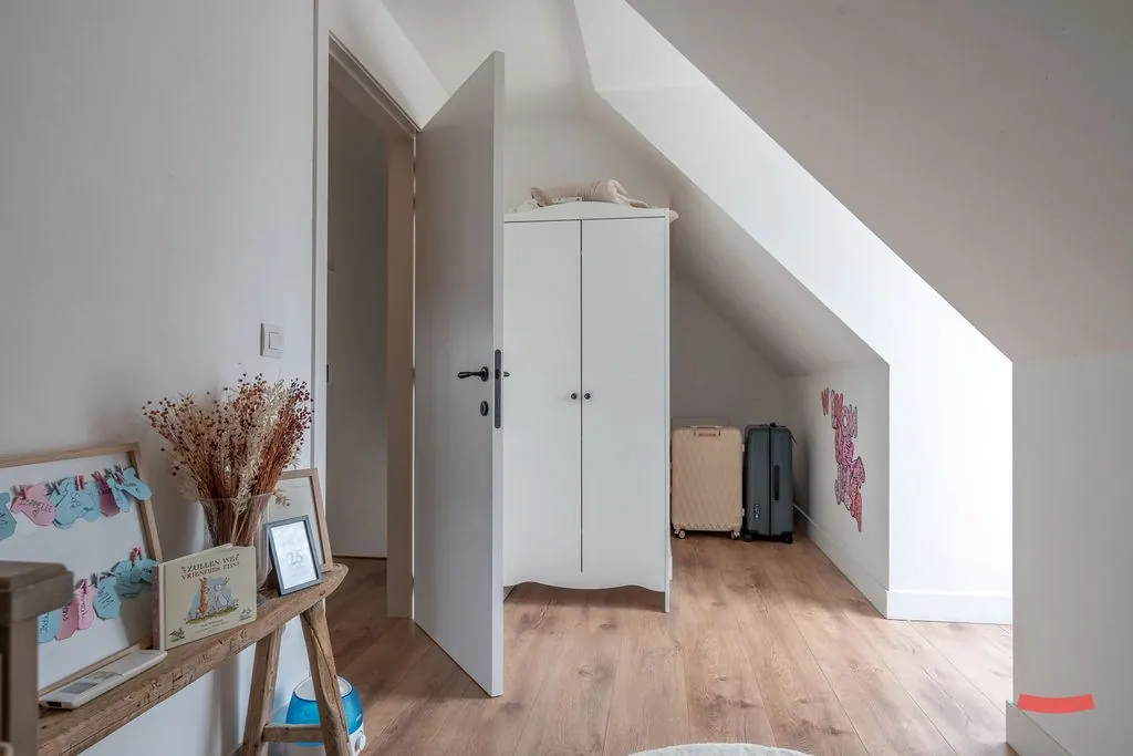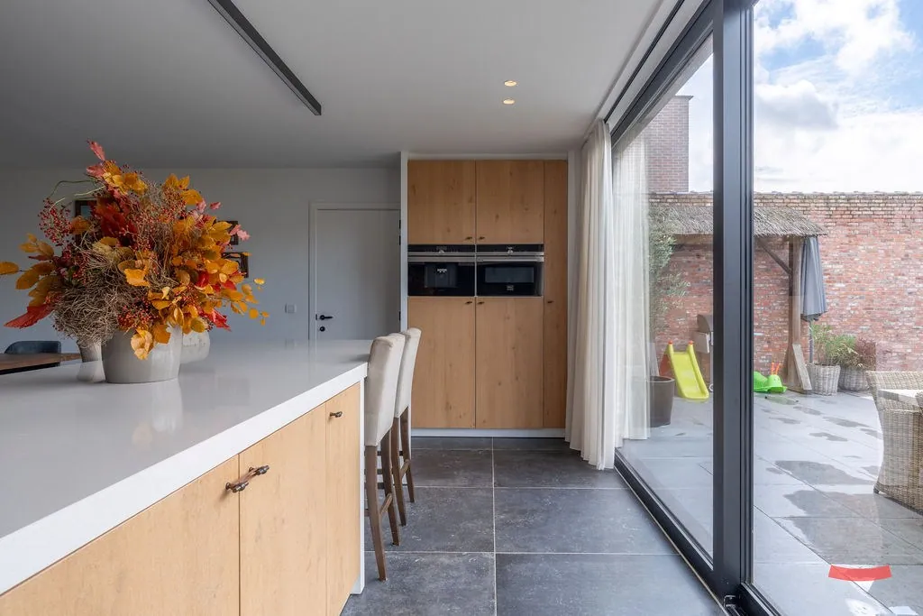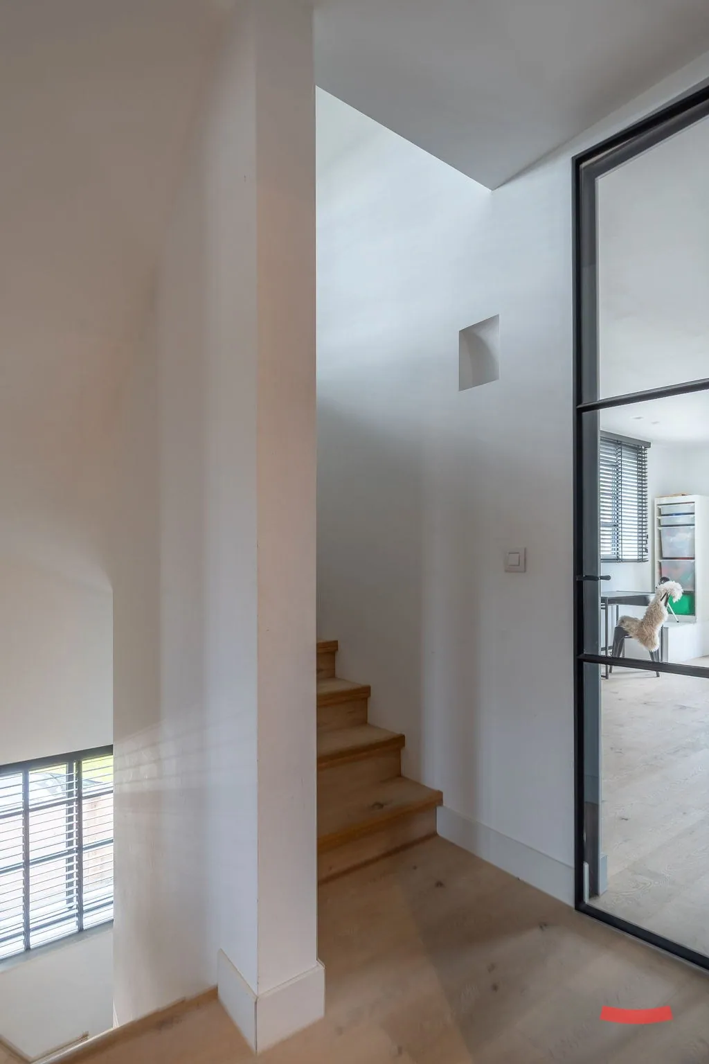 De échte woonkamer ligt op de 1ste verdieping. Een tikje atypisch zeg je? Misschien, maar daar worden wij net blij van. Na de afwas ga je gezellig naar boven, om daar de avond af te sluiten. “Ja, maar dan moet je telkens naar beneden als je wat wil drinken”. Niet dus, want om het hoekje zit een (wijn)koeler verstopt. “Oké, maar je hebt wel geen rechtstreekse buitenruimte naast de woonkamer”. Fout, want je kan aansluitend nog een dakterras maken. Nog vragen? Dat dachten we al.