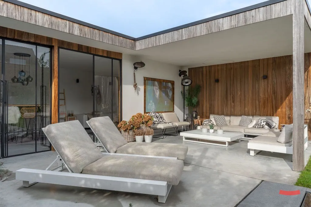 En dan de tuin. Tja, wat moeten we daar nog meer over zeggen? De foto’s spreken eigenlijk voor zich, toch? Tot in de puntjes in orde, en afgewerkt met hoogwaardige en stijlvolle materialen. Thuiskomen.