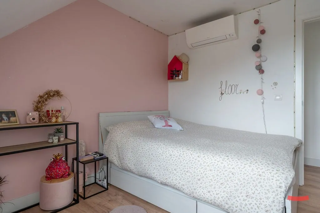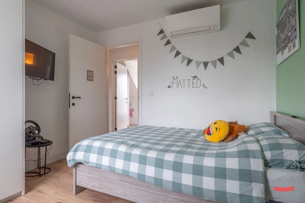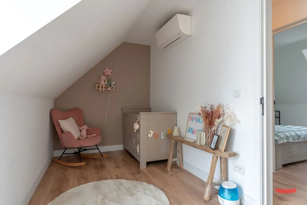 Op de 2de verdieping werden 3 slaapkamers voorzien, telkens met airco, en ook hier is nog een apart toilet.