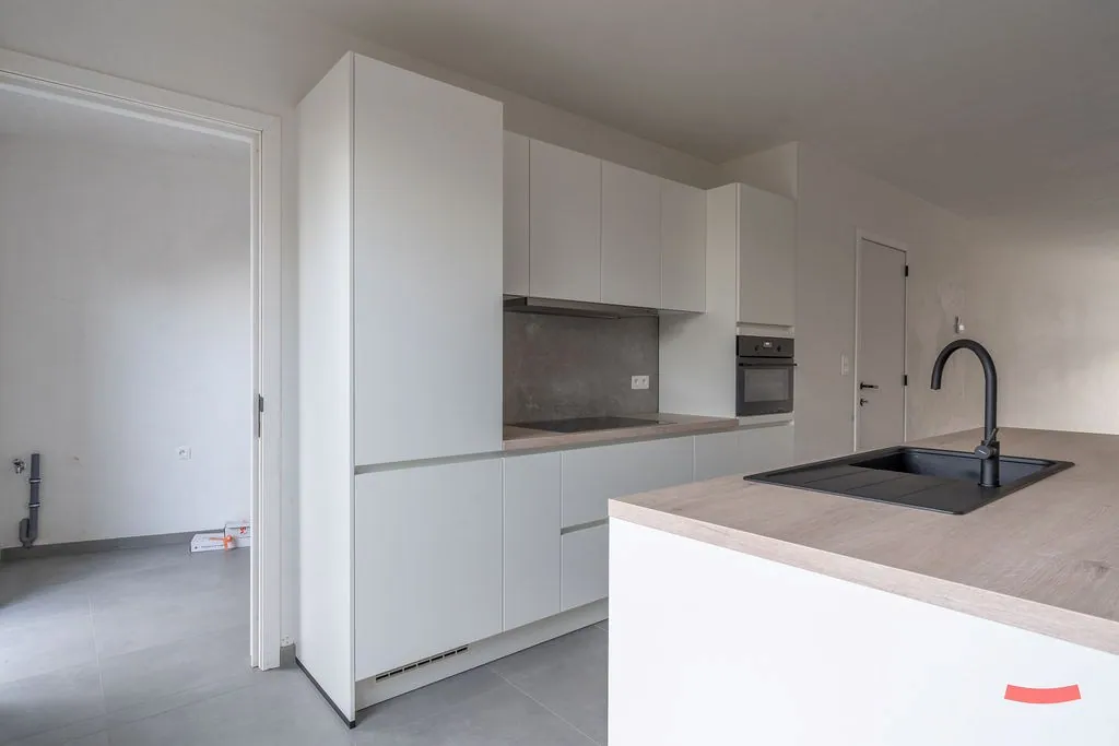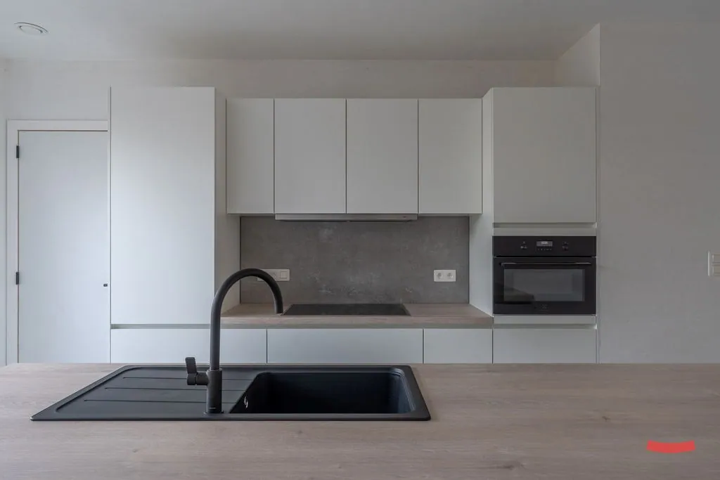 Verder komen we in de woonkamer met open keuken. Laat je verrassen door de grote oppervlakte en de trendy, tijdloze afwerking. ... De keuken is voorzien van alle snufjes, met aansluitend nog een handige bergplaats. Achteraan zit de achterinkom, waar ook de aansluitingen voor wassen en drogen werden voorzien.