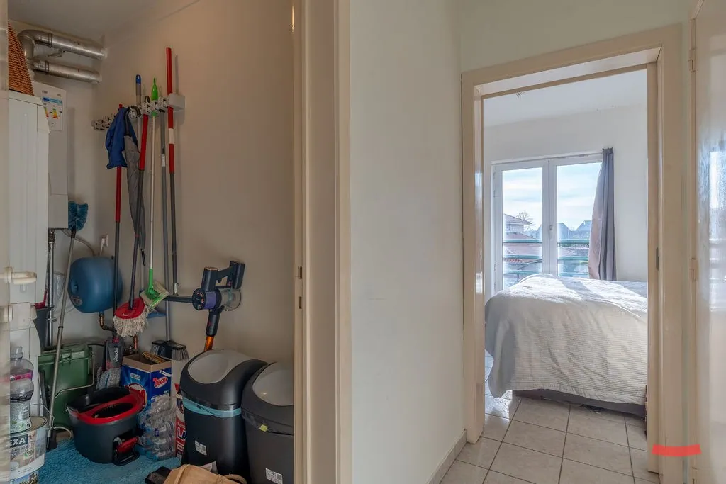 Aan de andere kant van de inkomhal zit dan weer de slaapkamer. Voldoende groot voor een ... flink bed, je kast en euh…wat andere rommeltjes. Check ook het grote raam, waardoor het lekker licht en luchtig is.