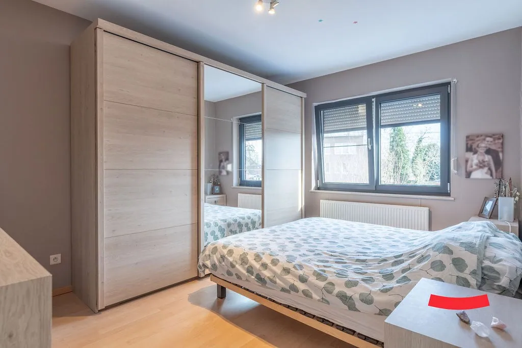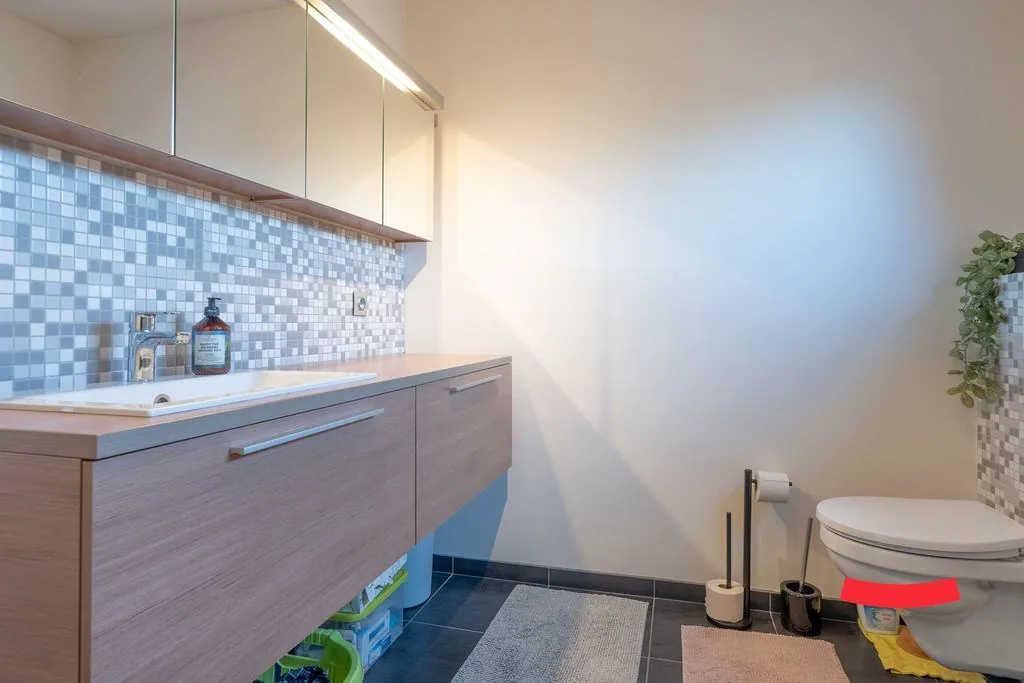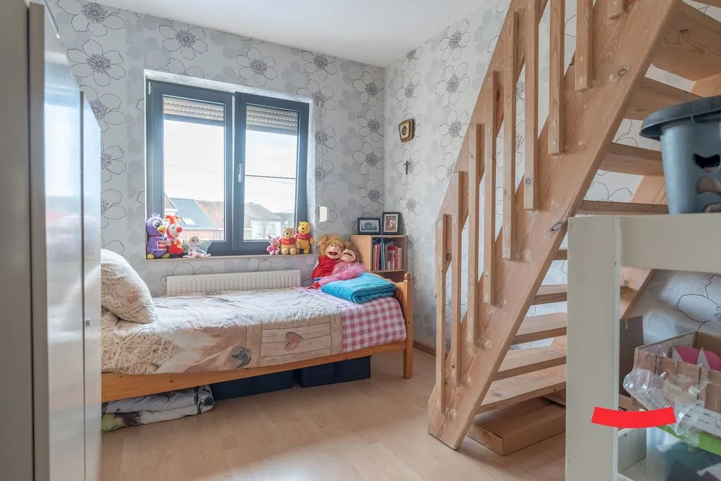 Op de 1ste verdieping vinden we 3 slaapkamers, voorzien van rolluiken, en een badkamer. Deze werd in een nieuwe jasje gestopt, met een douche, toilet en een fijn badkamermeubel.