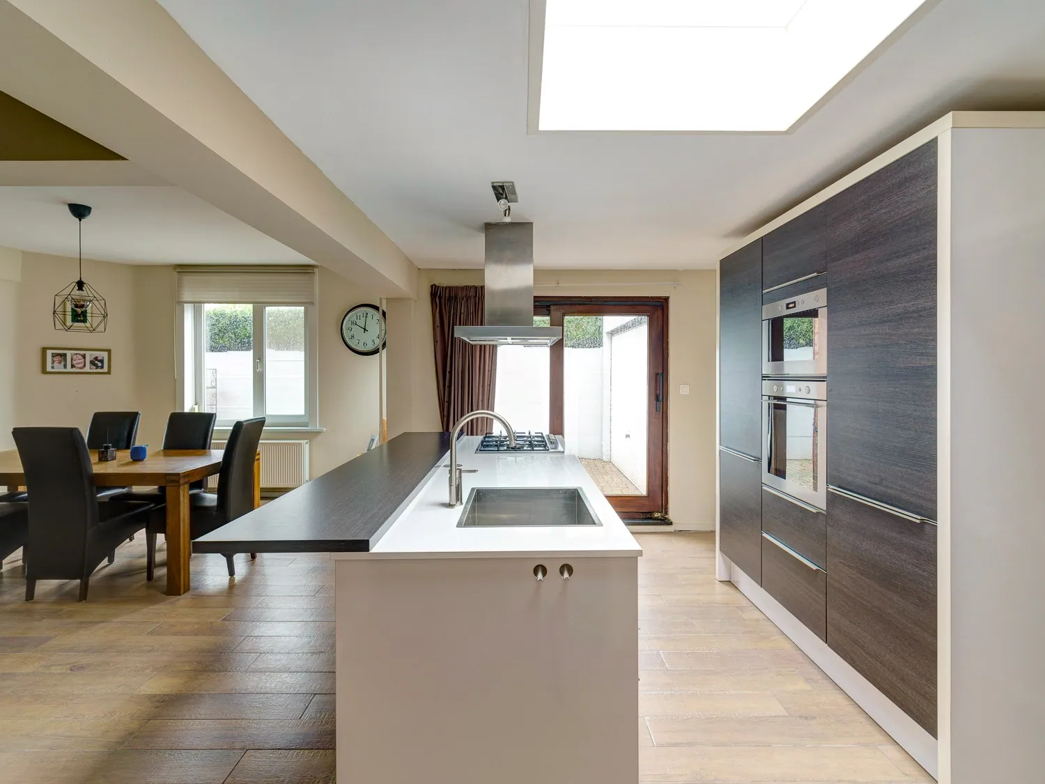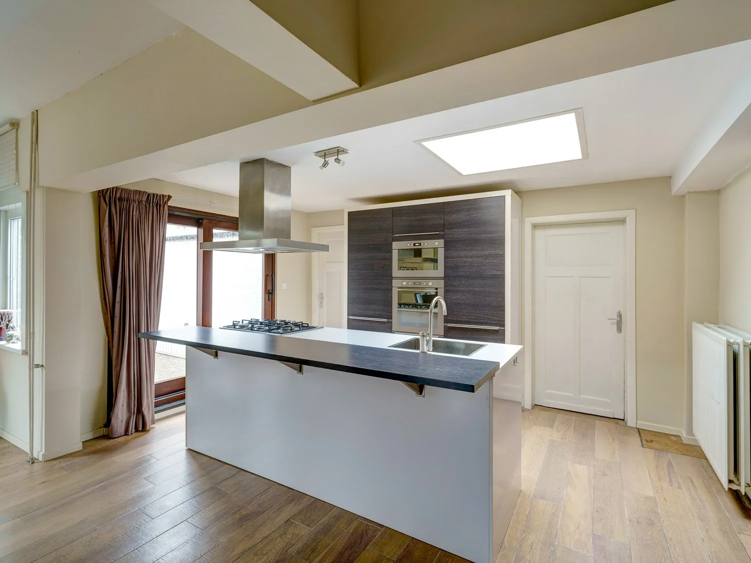 Via de inkomhal stappen we woonkamer in. Het allereerste wat de huidige eigenaar deed? De boel opengooien en een nieuwe vloer erin! Een open lay-out, wat zorgt voor licht en lucht. Aansluitend is de keuken. Deze werd in 2012 in een nieuw jasje gestopt, en voorzien van alle snufjes.