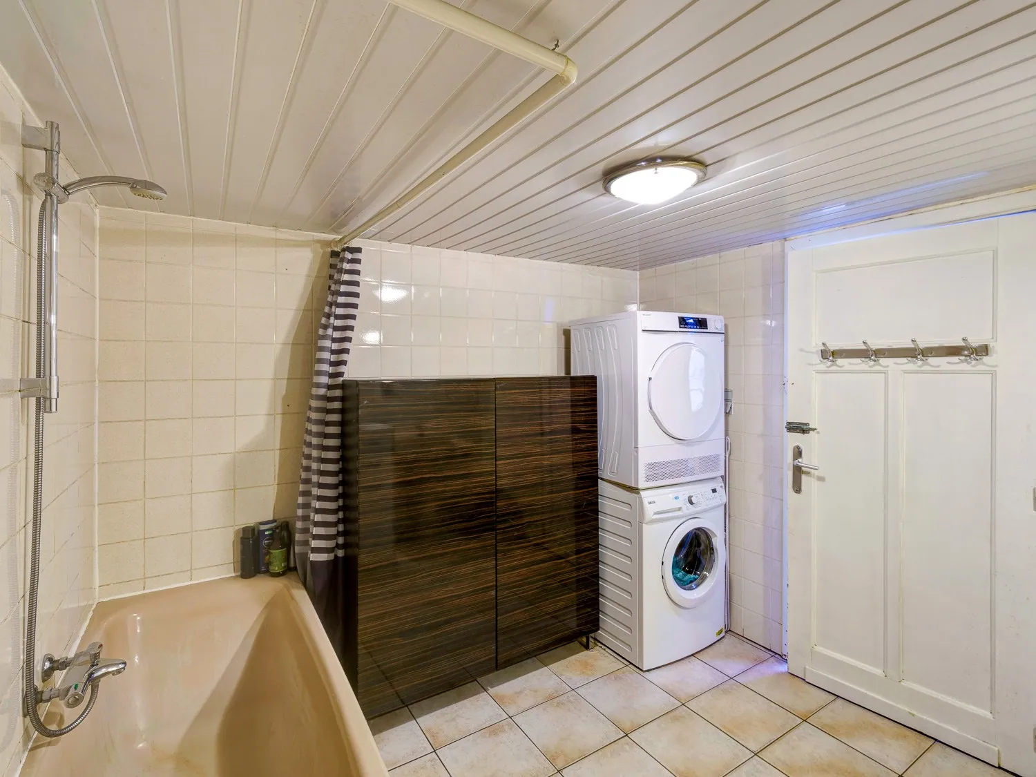 Ook de badkamer is beneden, met een bad, toilet en wastafel. Jep, die kan wat liefde gebruiken. Liever eerst wat budgetvriendelijk aan de slag? Wat dacht je van een lik tegelverf, een strak vals plafond en een paar ... toffe kranen? Dan kan de badkamer heus nog wel een rondje mee.