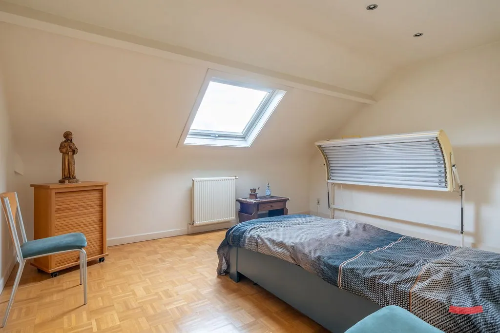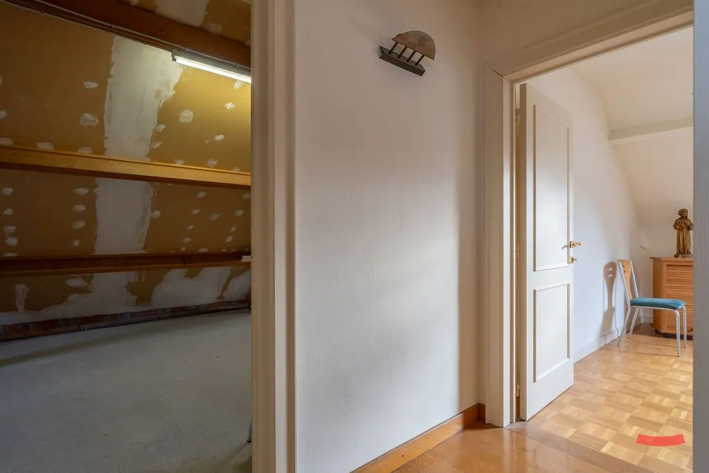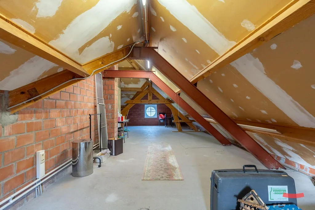 De overige ruimte doet voorlopig dienst als zolder, maar kan perfect omgetoverd worden naar een kantoor, hobbyruimte of extra slaapkamer(s) met een 2de badkamer.