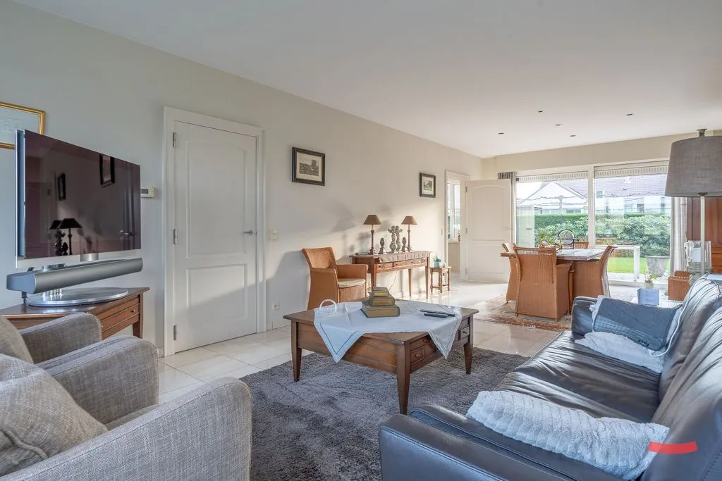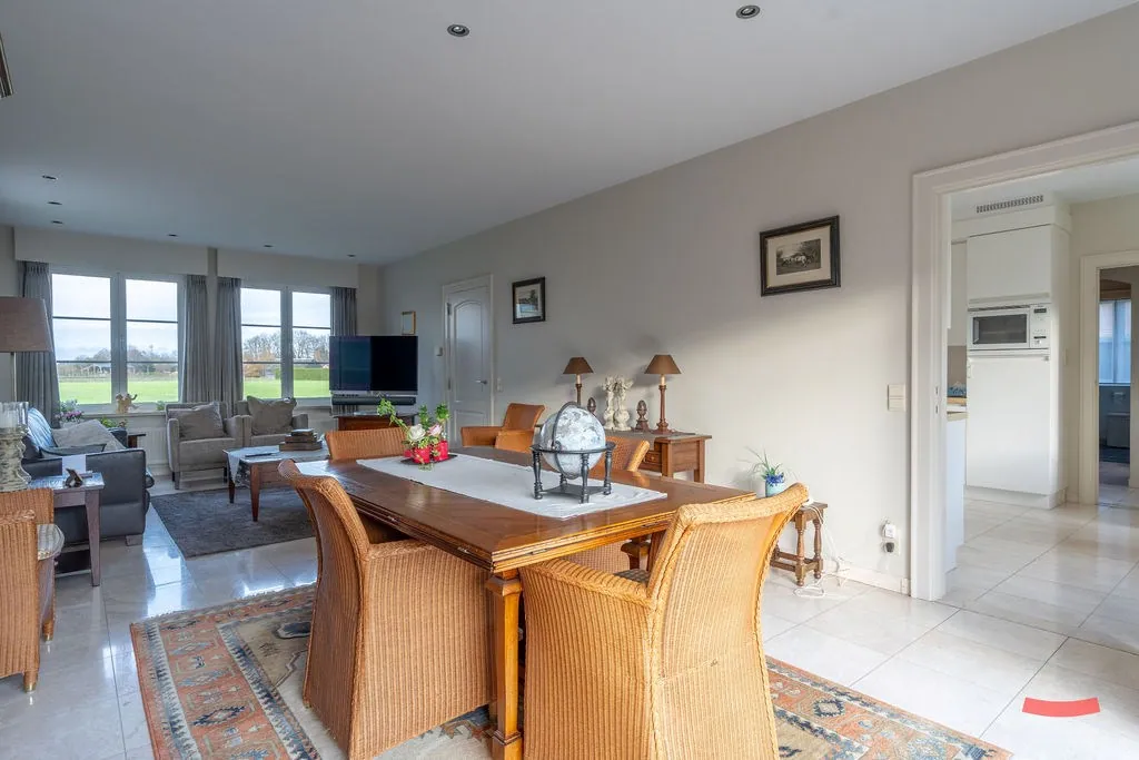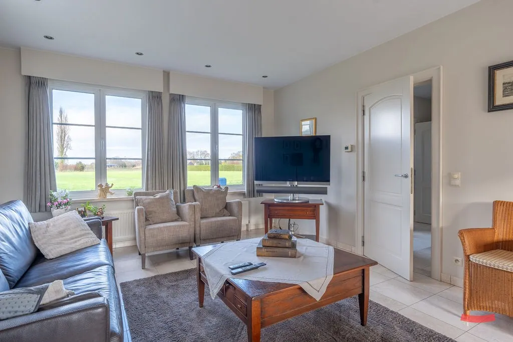 Zullen we rechts starten, in de woonkamer? Gezellig, licht en degelijk afgewerkt, da’s zo ongeveer de samenvatting van deze ruimte. ... Correctie: van het hele huis eigenlijk. Had je trouwens gespot dat je een fijn zicht op ’t groen hebt vanuit elke raam?