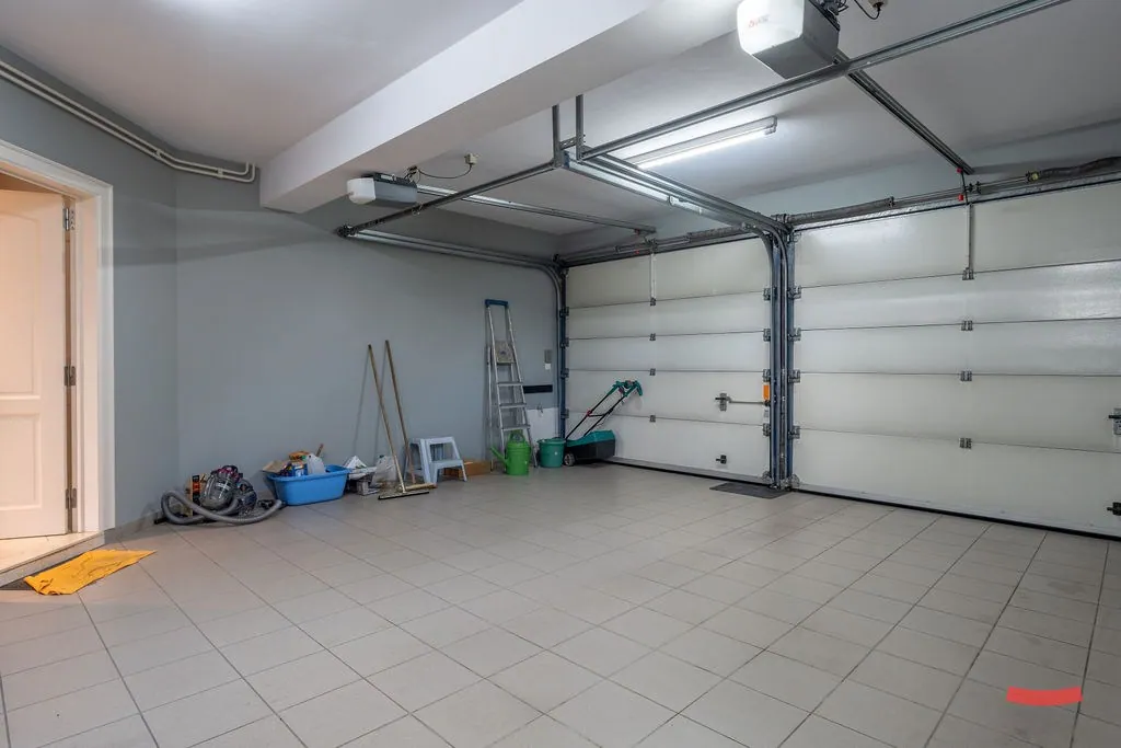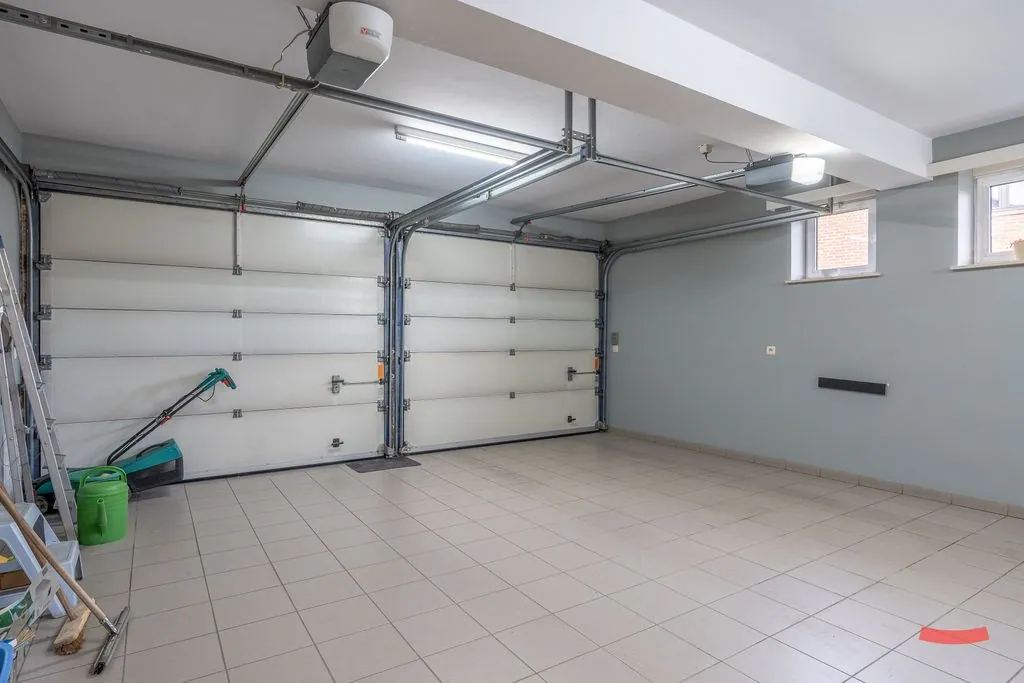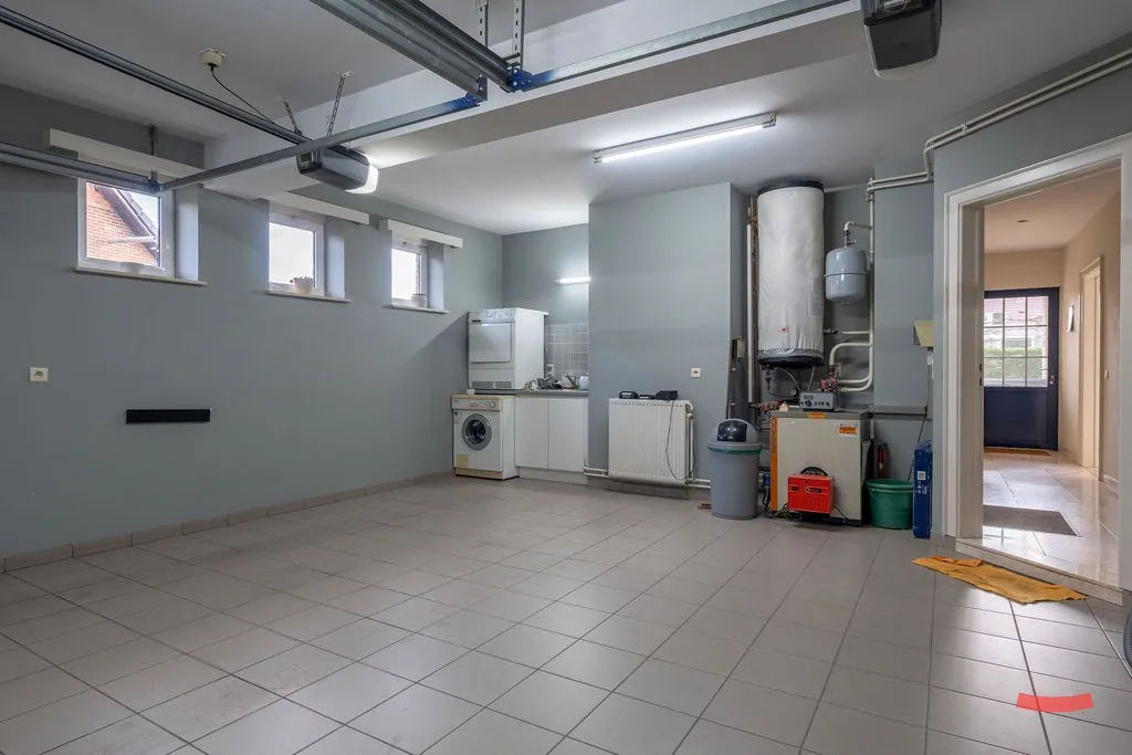 Tenslotte is er nog een dubbele garage, waar we ook de aansluitingen voor wassen en drogen vinden.