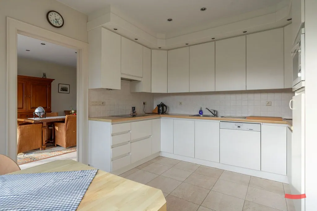 Aansluitend bij de woonkamer vinden we de keuken. Niet nieuw, maar neutraal en prima onderhouden. Deze kan dus echt nog wel een rondje mee. Zie je het meteen wat groter? Wat dacht je van het weghalen van de muur tussen woonkamer en keuken, en het plaatsen van een groot kookeiland (dat je stiekem al lang op je verlanglijstje had staan)?