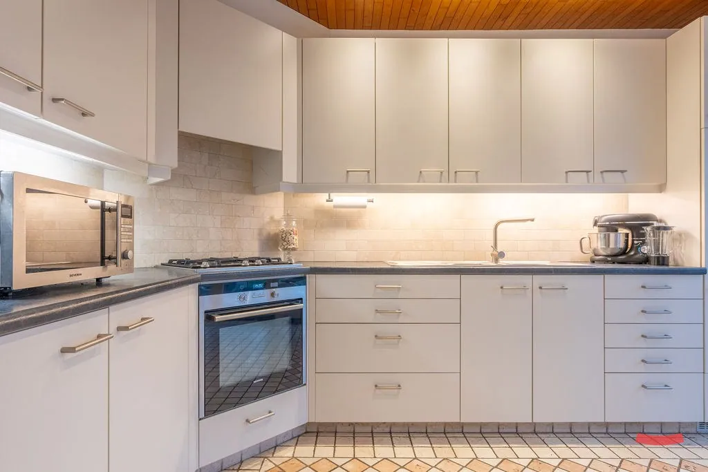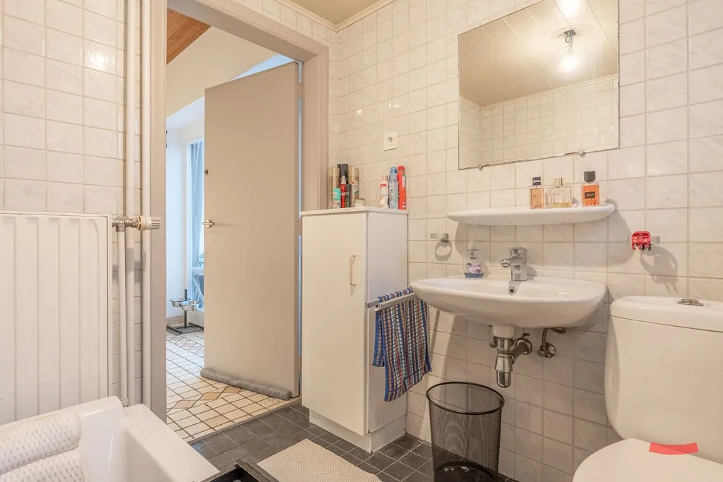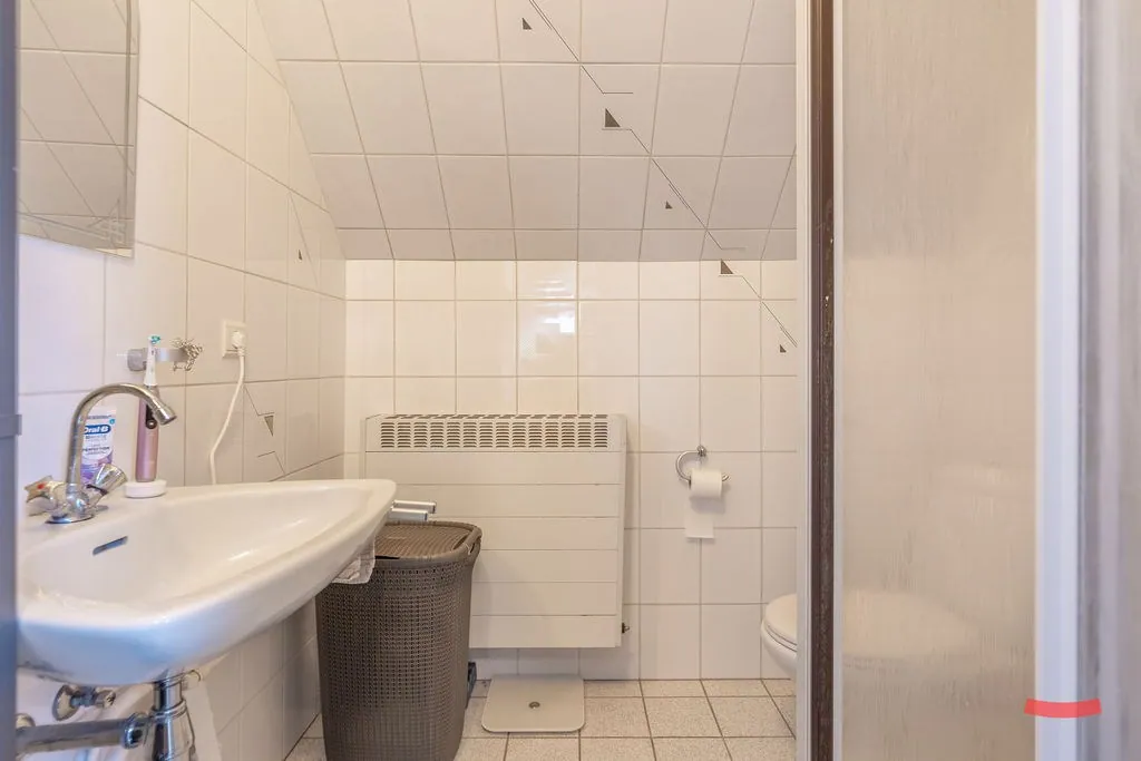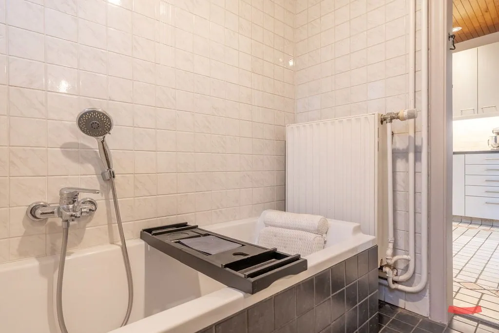 Liever eerst nog wat sparen, en staat dat dus niet metéén op de to-do list? No worries, de keuken zelf werd vernieuwd en kan dus nog heel wat jaartjes mee. Die wilde plannen hoef je dus niet per se meteen uit te voeren. Naast de keuken is een eerste badkamer, voorzien van een bad, toilet en wastafel.