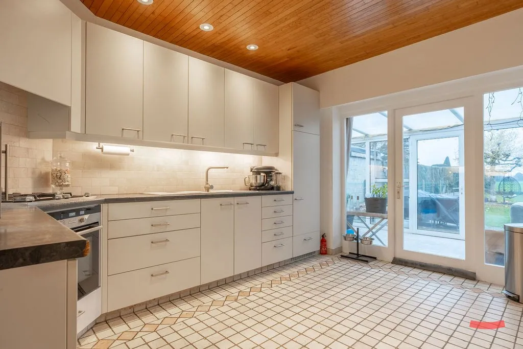 De riante veranda ... is een toffe bonusruimte. In het voorjaar zwier je de deuren open, en haal je de zon zo naar binnen. Aansluitend nog een ruime inpandige garage, waar we ook de aansluitingen voor wassen en drogen vinden.