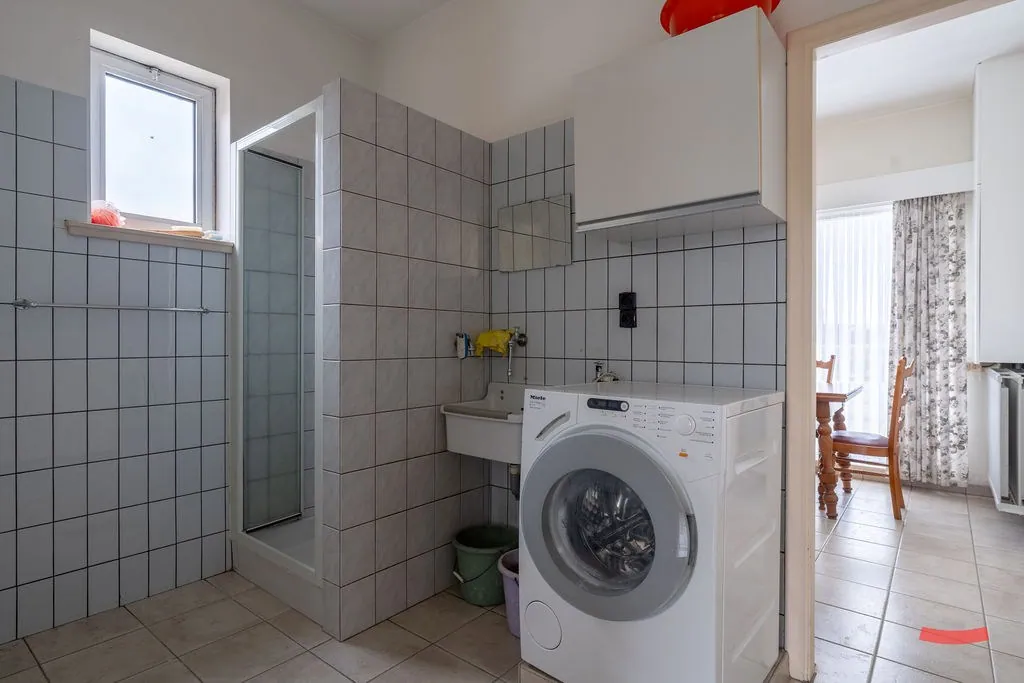 Verder vinden we naast de keuken nog de wasplaats met douche, apart toilet en een bonuskamer. Wasda, vraag je? Momenteel ingericht als extra zitkamer, maar ook perfect als kantoor of speelruimte voor de kinderen. Tenslotte is er ook nog een (droge) kelder.