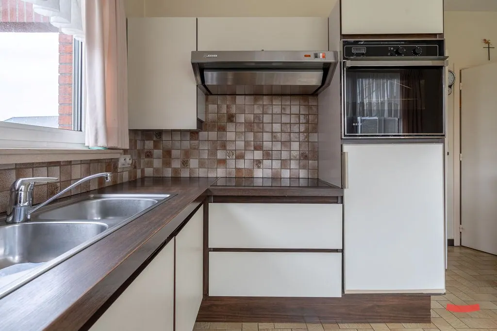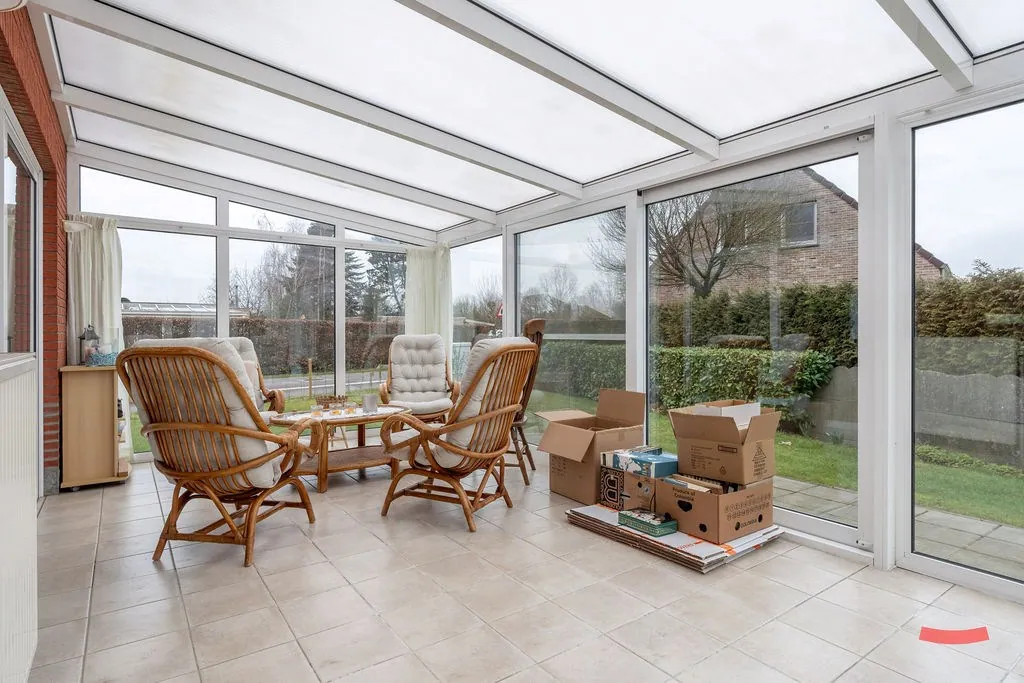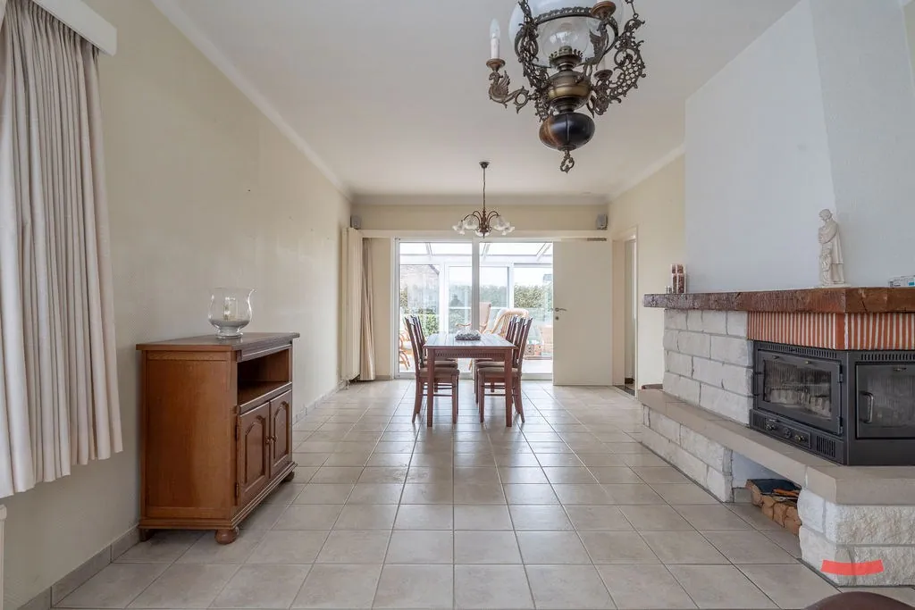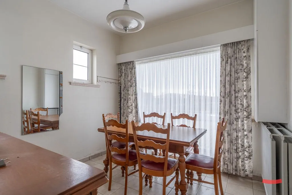 En dat geldt ook voor de keuken. Oké, die ga je allicht vervangen, maar je kan werken met een grote ruimte met veel lichtinval, die nog eens extra in de verf gezet wordt door de veranda achter de woning. (By the way; ziet de keuken er niet belachelijk goed uit voor maar liefst 50 jaar oud te zijn? Dat zegt veel over hoe de eigenaars het huis steeds onderhouden hebben, of wat had je gedacht?)