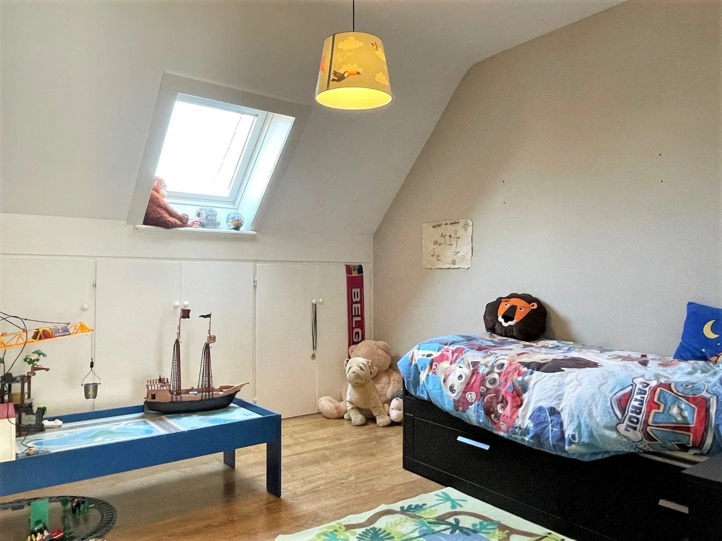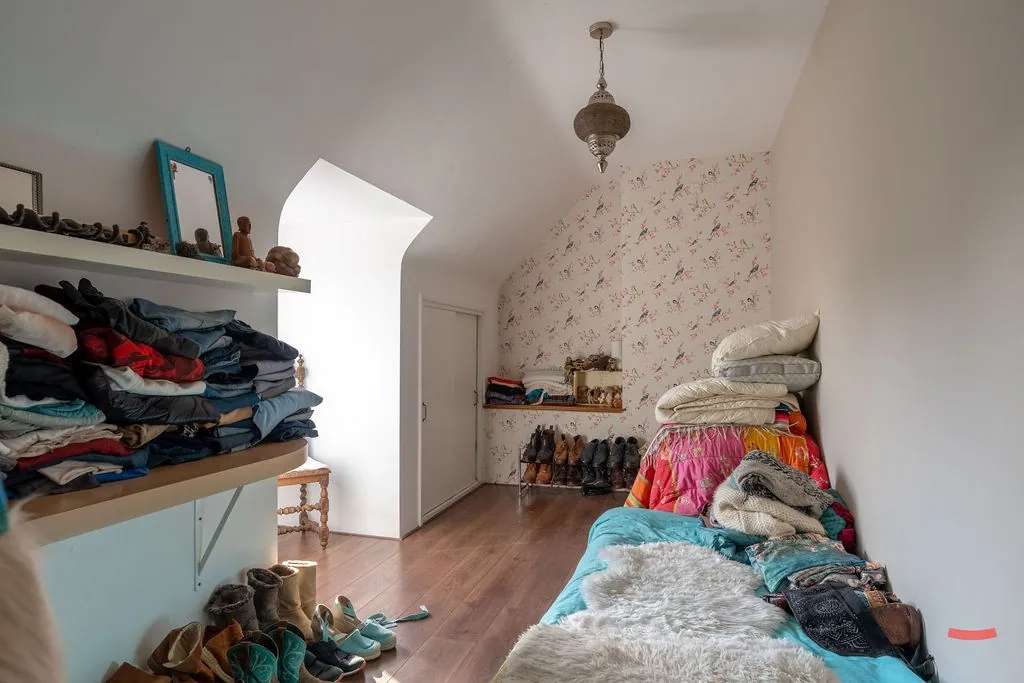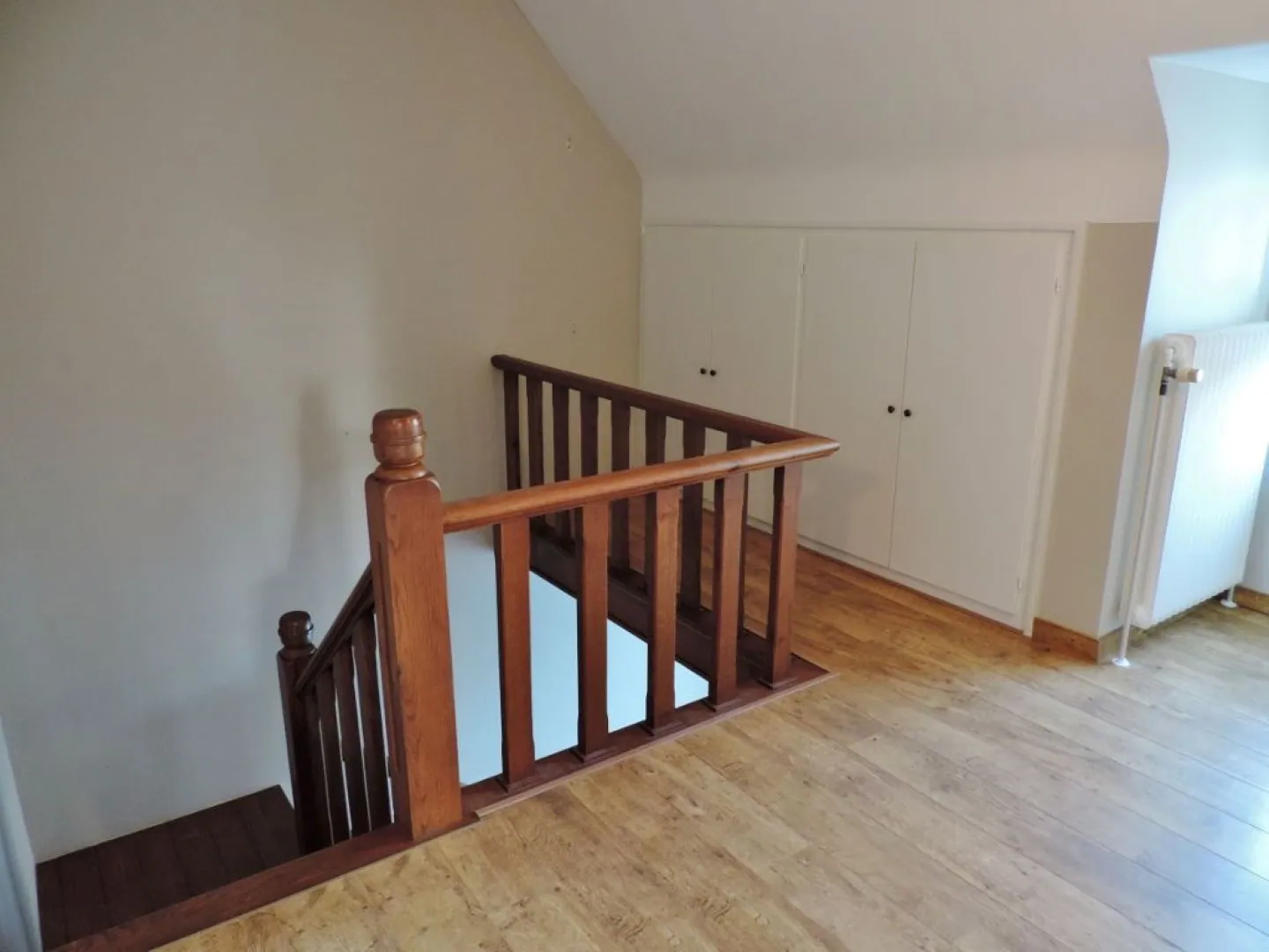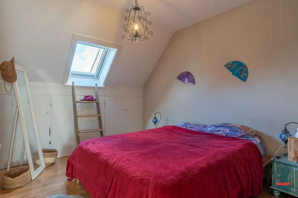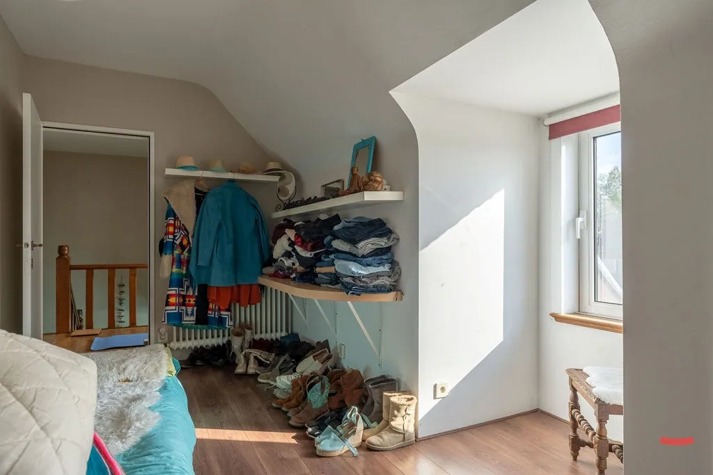 Gezellige binnenkomer, zo’n open inkomhal met trap naar boven. En ook lekker ruim, want zoals je op de foto’s kan zien: er past een tweepersoonsbed in. Misschien een iets té hartelijk ontvangst voor je gasten, maar you get the point, toch?